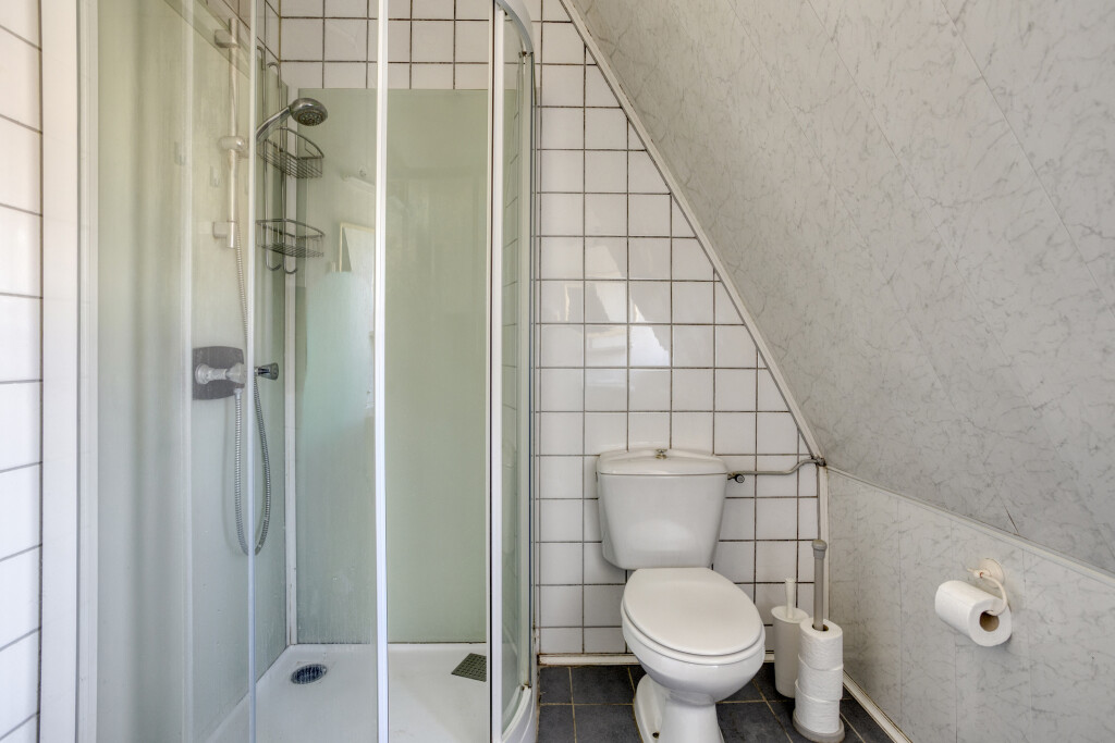 Via de trap in de hal bereikt u de verdieping. De ruime overloop geeft toegang tot drie ruime slaapkamers en de badkamer. De badkamer is voorzien van een douchecabine, wastafel en toilet.