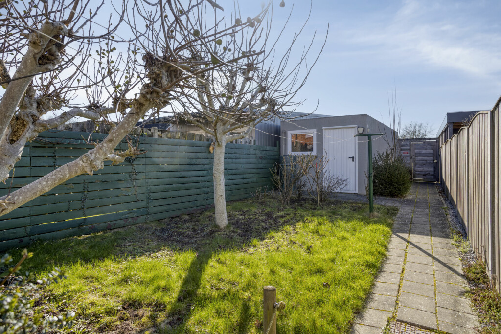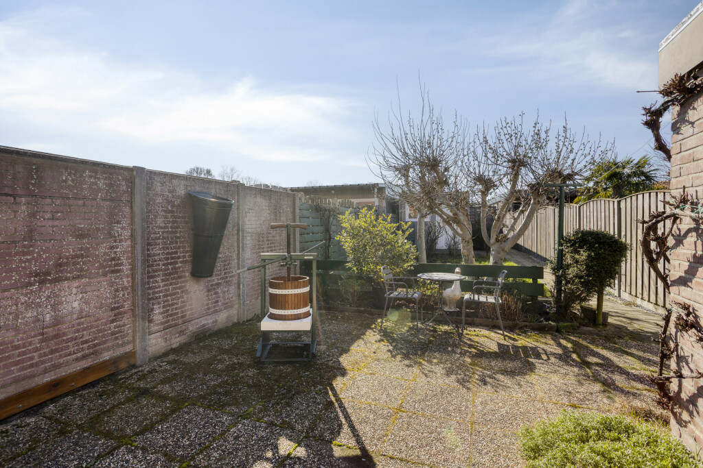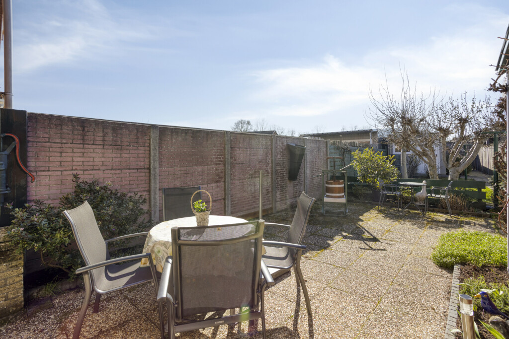 De ruime en diepe achtertuin is gelegen op het zuidwesten en biedt in de middag volop zon. Dankzij het royale terras kunt u hier eenvoudig een fijne zit- en/of eetplek creëren. In 2019 is een nieuwe garage met oprit gerealiseerd, ideaal voor het parkeren van uw auto.