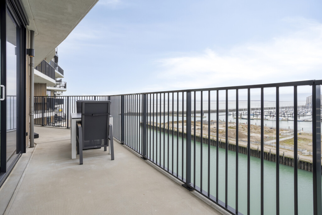 Via de schuifdeuren in zowel de woonkamer als de slaapkamers stapt u op het ruime balkon, dat aan beide zijden van het appartement is gelegen. Hierdoor kunt u altijd een zonnig of beschut plekje vinden om te genieten van het weidse uitzicht over het strand van Breskens en de Westerschelde.