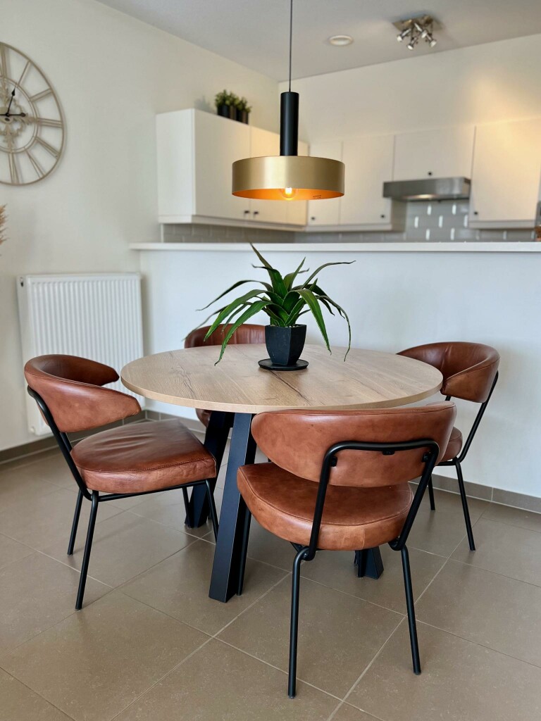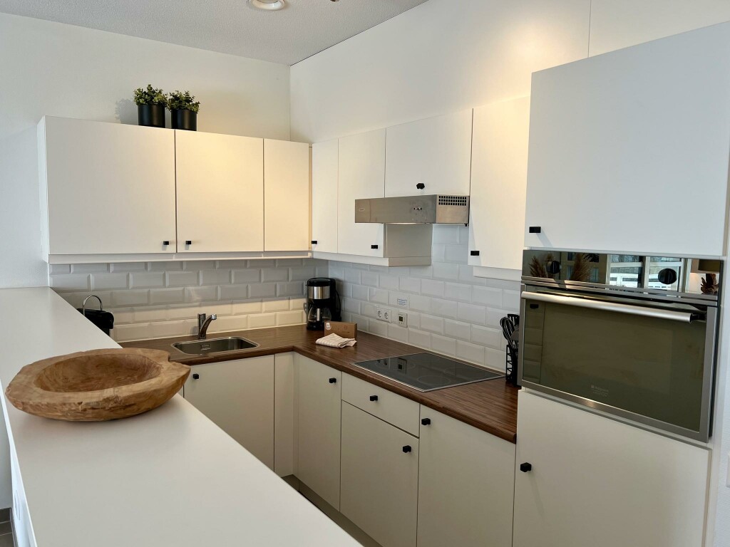 Bij binnenkomst wordt u begroet door de ruime en lichte woonkamer, naadloos verbonden met een luxe open keuken uitgerust met inbouwapparatuur zoals een inductiekookplaat, koelkast met vriesvak en combi-magnetron. Hier kunt u naar hartenlust koken en genieten van gezellige diners met familie of vrienden. De handige berging bevindt zich vlakbij de keuken.