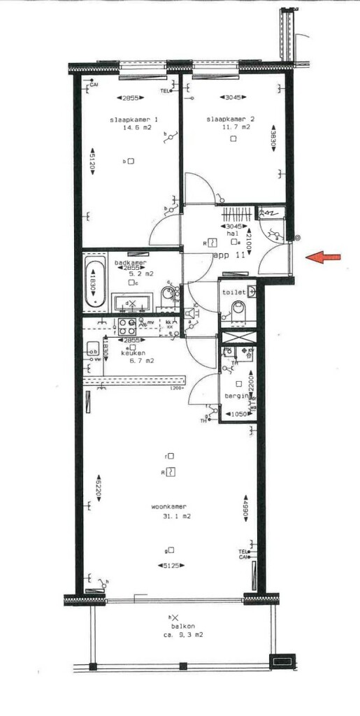 - Appartement is, met uitzondering van de slaapkamers, voorzien is van een tegelvloer