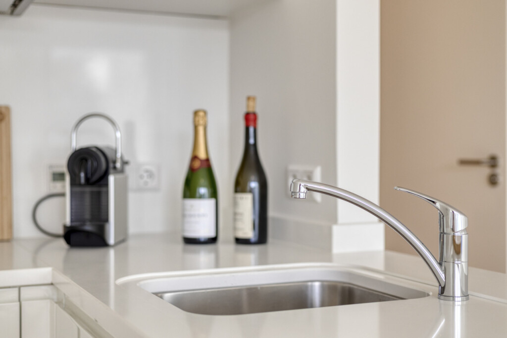 Via de ruime entree, die toegang biedt tot alle vertrekken, bereikt u de lichte woonkamer met gezellige zithoek en schuifpui naar het op het zuiden georiënteerde balkon. Hier geniet u op elk moment van de dag van zon en frisse lucht. De open keuken sluit naadloos aan op de woonkamer en is voorzien van een kookplaat, een afzuigkap en een koelkast. Aansluitend is er een praktische berging met ruimte voor de wasmachine en eventueel een losse combimagnetron, netjes uit het zicht.
