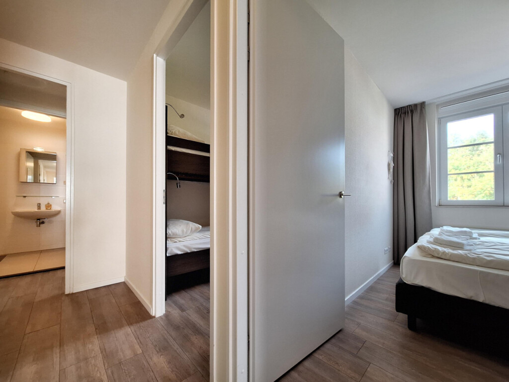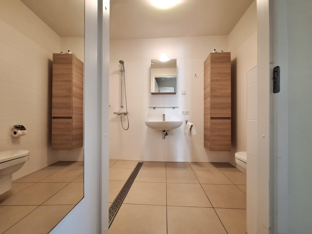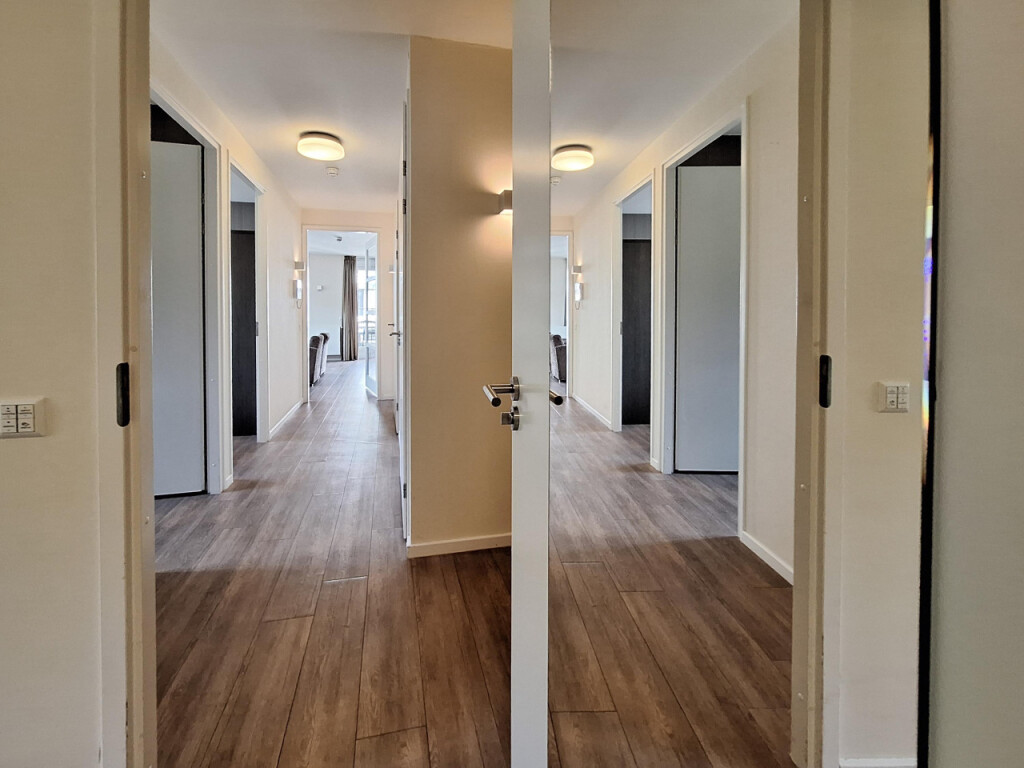 Het appartement is, met uitzondering van de natte ruimtes, voorzien van een stijlvolle PVC-laminaatvloer.