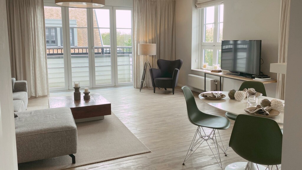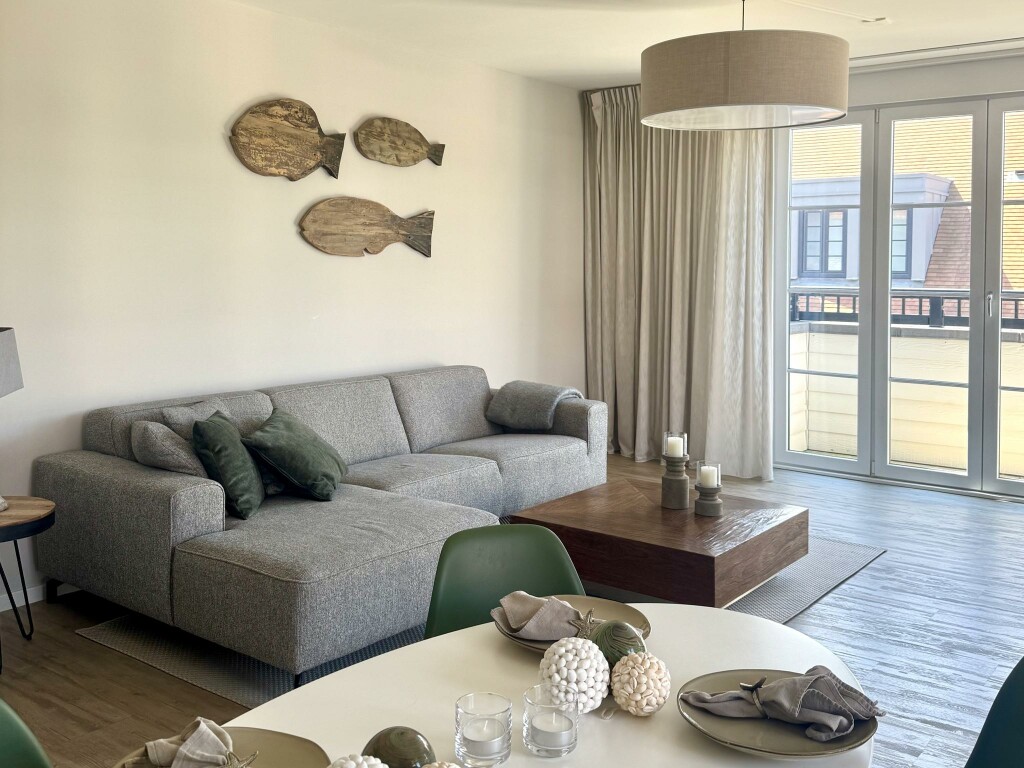 Via de ruime hal bereikt u de sfeervolle en lichte woonkamer. De woonkamer heeft via openslaande deuren toegang tot 2 balkons waar u kunt genieten van een schitterend uitzicht op de duinen, het verder gelegen polderlandschap en het centrum van Cadzand-Bad.