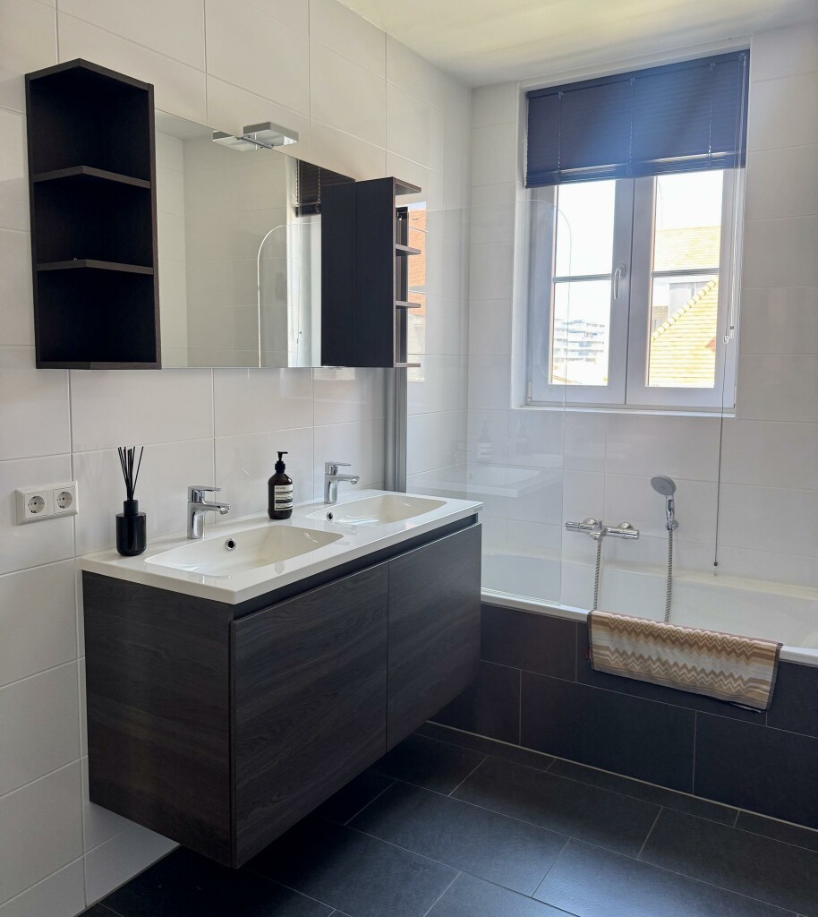 Het appartement beschikt over twee comfortabele slaapkamers met kasten. De badkamer is luxe afgewerkt en voorzien van een inloopdouche, een dubbel wastafelmeubel, handdoekradiator en een ligbad.