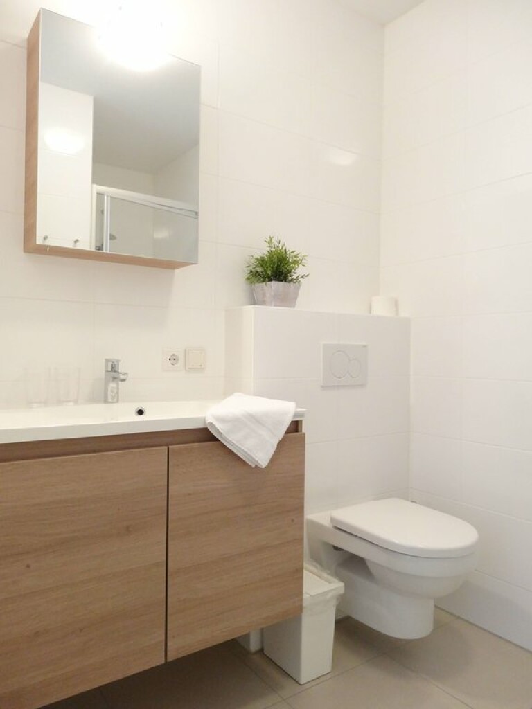 Het appartement is, met uitzondering van de badkamer en het toilet, afgewerkt met een eiken houten vloer.