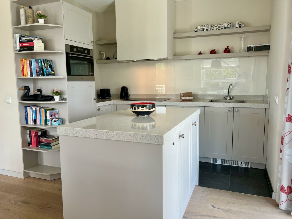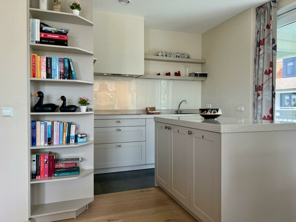 Via een ruime hal komt u in de lichte woonkamer met houten vloer en toegang tot twee balkons waardoor u altijd een plekje heeft om van de zon te genieten. Hier is het heerlijk relaxen met een hapje en een drankje. De open luxe keuken met tegelvloer en eiland is voorzien van inbouwapparatuur, een inductie kookplaat, combimagnetron, koelkast met vriesvakje en een vaatwasser. De berging is eenvoudig bereikbaar vanuit de hal, waardoor u snel toegang heeft tot deze praktische opbergruimte.