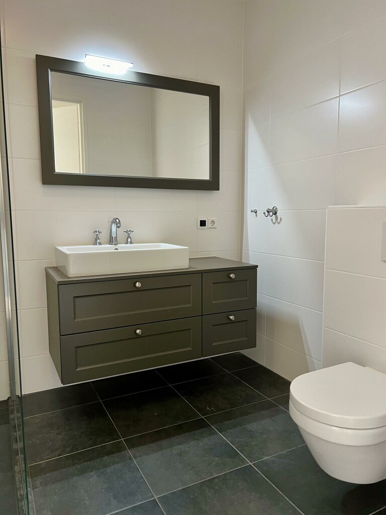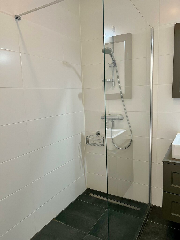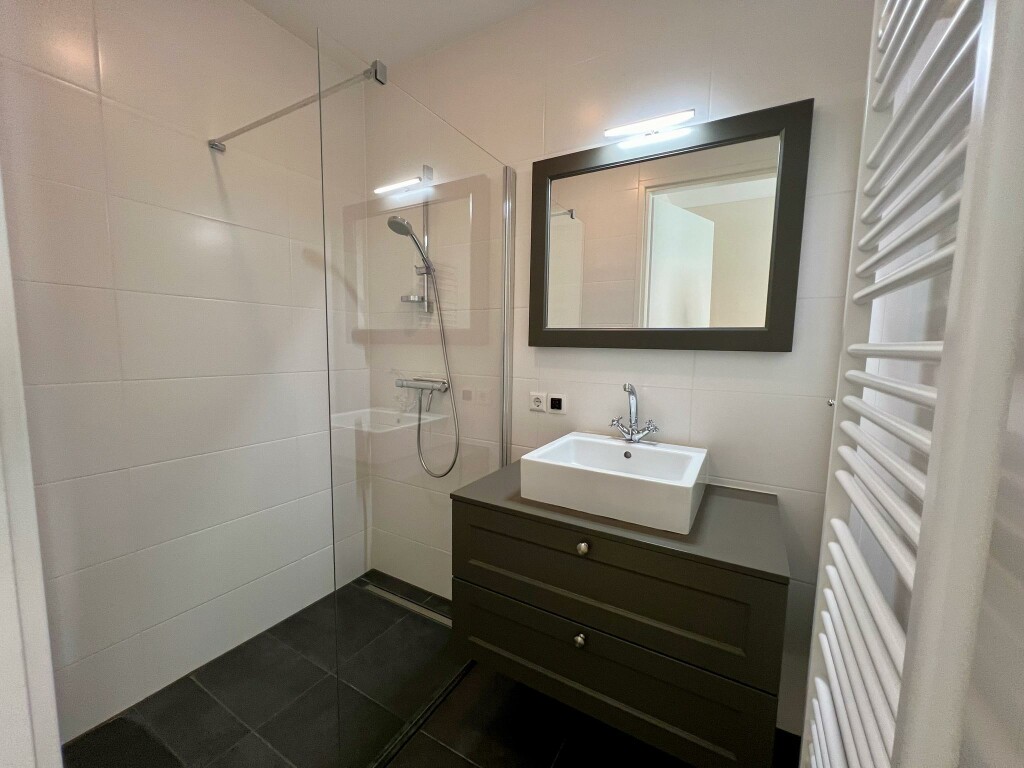 De twee slaapkamers, ook voorzien van een houten vloer, hebben ieder een eigen badkamer en-suite. Beide badkamers zijn uitgerust met een inloopdouche en een wastafelmeubel. In de grootste badkamer treft u ook een toilet. Een tweede (gasten)toilet is bereikbaar via de hal.