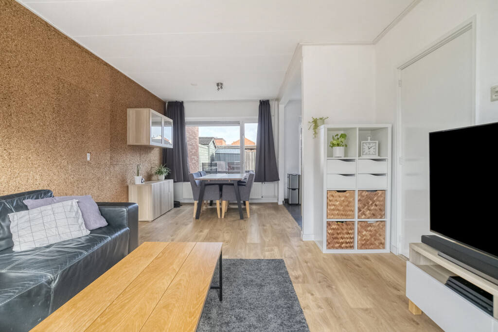 Je komt de woning binnen in de hal, welke is afgewerkt met een nette tegelvloer en toegang geeft tot het toilet met fonteintje, de meterkast en de trapopgang naar de eerste verdieping. Onder de trap is een praktische trapkast met volop provisieruimte. De lichte doorzonwoonkamer is voorzien van een nette laminaatvloer en biedt een gezellige leefruimte. De open keuken is geplaatst in een praktische hoekopstelling en is uitgerust met alle benodigde inbouwapparatuur, waarvan een deel is vernieuwd; XXL vaatwasser (2025), luxe combi-oven (2024) en inductiekookplaat (2023) Vanuit de keuken loop je zo de achtertuin in.