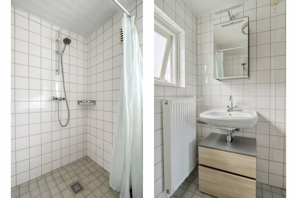 Vanaf de overloop heb je toegang tot 3 slaapkamers, stuk voor stuk functioneel in te delen en geschikt als slaap- of werkkamer. De badkamer is volledig betegeld en voorzien van een douche, wastafel, bergkast en spiegelkast.