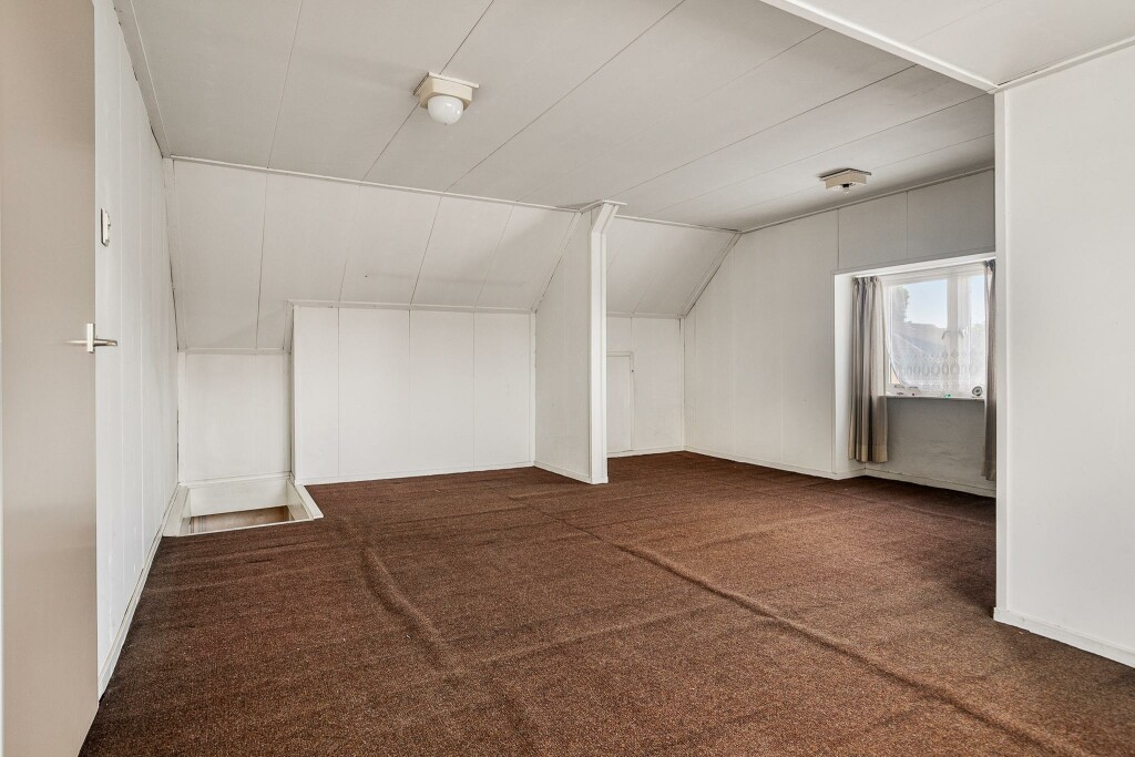 Vanuit de woonkamer de trap naar de verdieping waar u na 3 tredes eerst de “opkamer” treft, ideaal als werkkamer. Op de verdieping komt u in een grote ruimte met dakkapel, die nu gebruikt wordt als slaapkamer en vanuit hier komt u in de 2e slaapkamer. Van de grote slaapkamer zou u 2 slaapkamers en een overloop kunnen maken. Onder de schuine kanten zijn bergingen aanwezig.