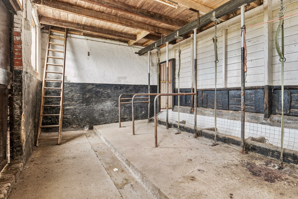 Rondom de schuur en achter de woning is alles verhard, ideaal om te parkeren en naar de schuur te rijden voor in- en uitladen. De schuur is 130m2 groot en heeft een betonnen vloer. Aan beide zijdes is een metalen dubbele deur, daarnaast is er nog een hooizolder, fietsenberging en een ruimte waar vroeger de koeien op stal stonden. Verder is er een bron in de schuur en buiten aanwezig.