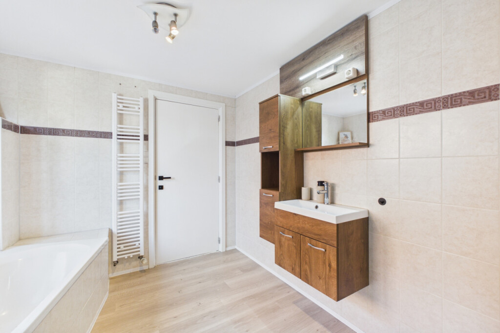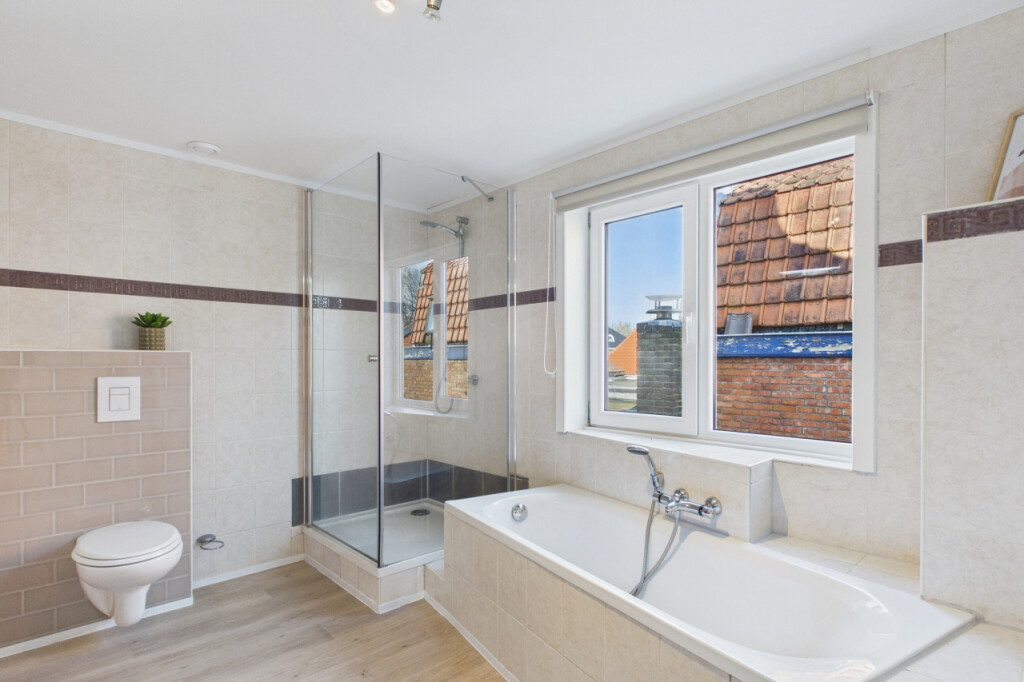 De eerste verdieping beschikt over drie slaapkamers, die stuk voor stuk een prettige lichtinval hebben en multifunctioneel te gebruiken zijn. De gemoderniseerde badkamer is compleet uitgerust met een wastafel, douche, ligbad en toilet, wat zorgt voor optimaal comfort.