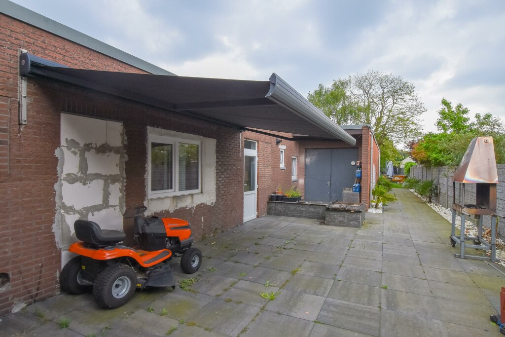 Naast de woning een heerlijk terras met groot zonnescherm en toegang tot de ruime berging. Achter de woning is een zeer diepe tuin van wel 40 meter. De gehele achtertuin heeft een nieuwe schutting en is tot het einde van de tuin voorzien van elektra punten, water en een internetkabel. De tuin is zelfs geschikt voor het houden van wat beestjes.