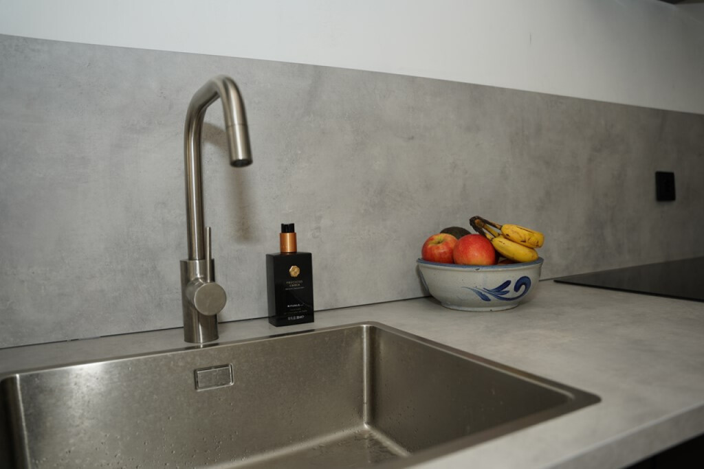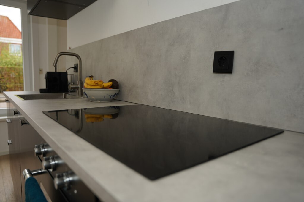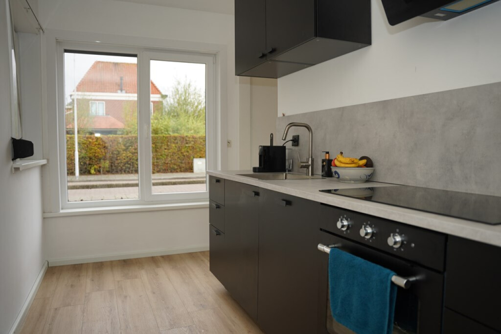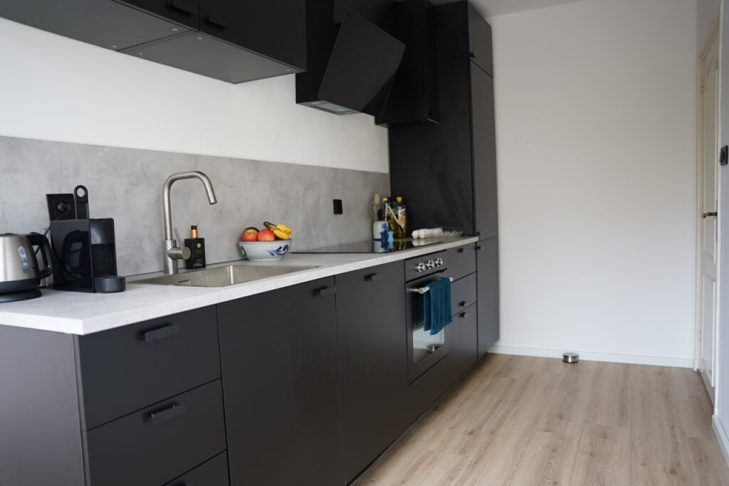 De moderne keuken is strak afgewerkt, recent vernieuwd en voorzien van alle benodigde inbouwapparatuur.