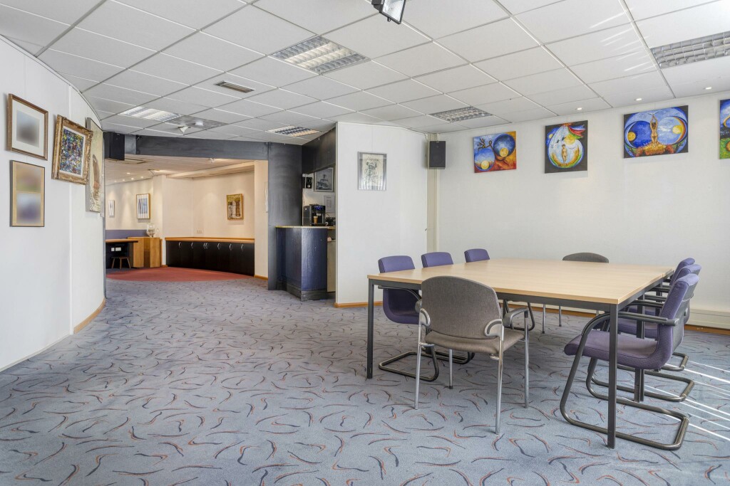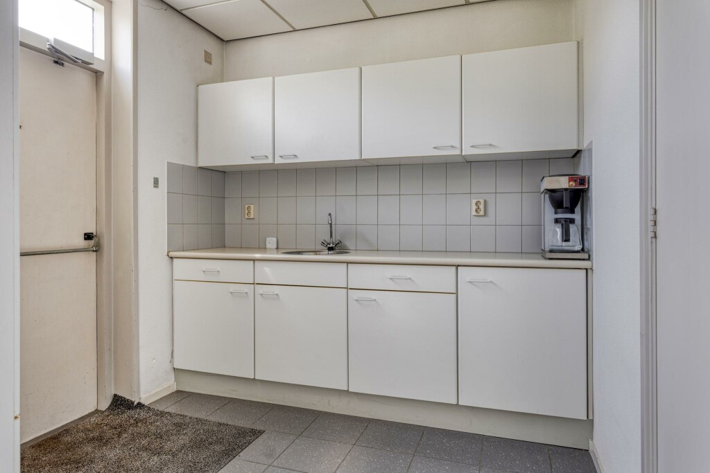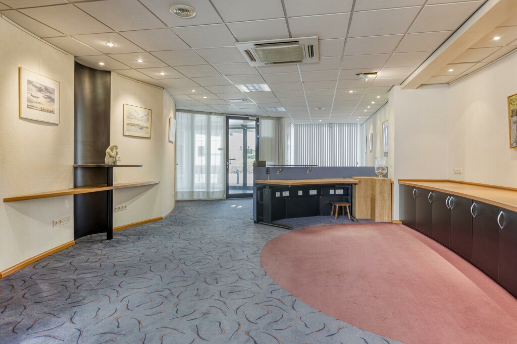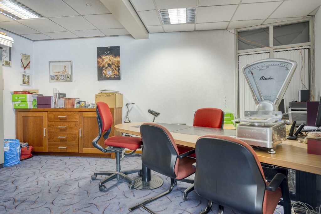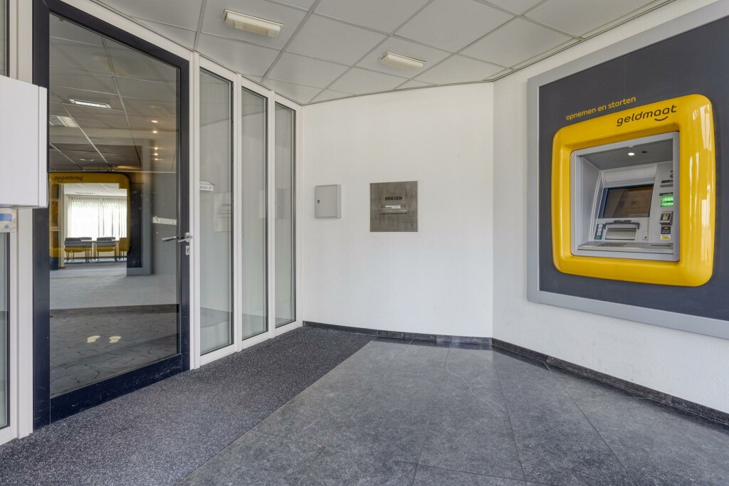 Bij binnenkomst stap je via de oorspronkelijke entree met pinautomaat de voormalige bankhal binnen. Deze ruimte is functioneel van opzet en voorzien van een kitchenette. De oorspronkelijke kluis is nog aanwezig en draagt bij aan het karakter van het pand. Aangrenzend ligt een aparte kamer die nu dienstdoet als kantoorruimte. Achterin bevindt zich een afgesloten keuken. Wie het wonen graag gelijkvloers wil inrichten, kan deze ruimtes – met wat aanpassingen – omvormen tot slaap- en woonvertrekken. De eerder verleende toestemming voor het houden van een kunstgalerie is een leuke extra voor wie creatieve plannen heeft, maar vormt zeker geen vast omlijnde bestemming.