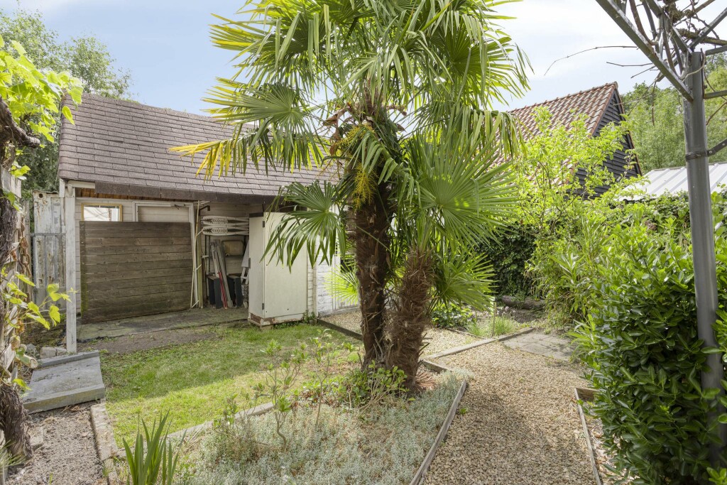 Aan de achterzijde van de woning ligt een groene, beschutte tuin die verrassend veel privacy biedt. De bestaande beplanting zorgt voor een natuurlijke sfeer en geeft de buitenruimte een volwassen uitstraling. Dankzij de ligging tussen andere bebouwing is het hier opvallend stil, ondanks de centrale locatie. Of je nu graag tuiniert, een boek leest in de zon of gewoon wilt genieten van de rust: dit is een heerlijke plek om buiten te zijn.