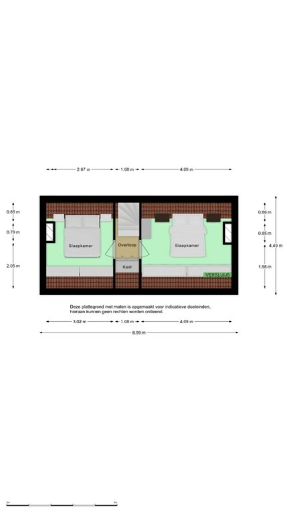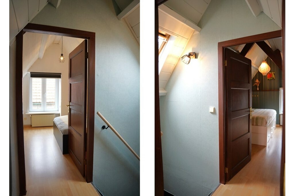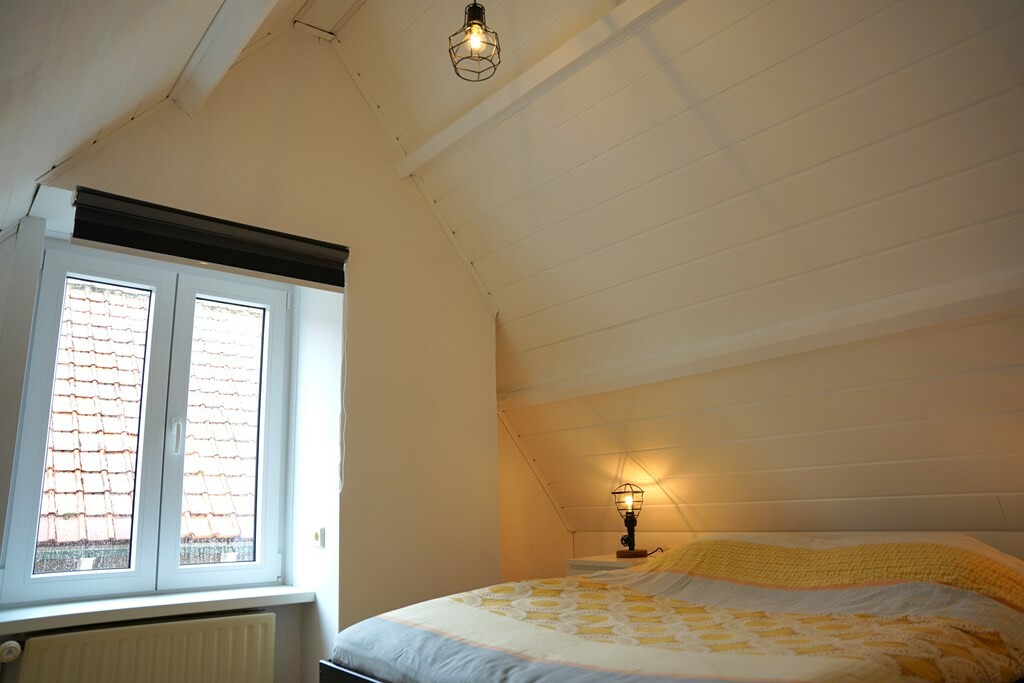 Een veluxvenster zorgt hier voor voldoende lichtinval en een vaste hoge kast voorziet in extra garderobe ruimte.