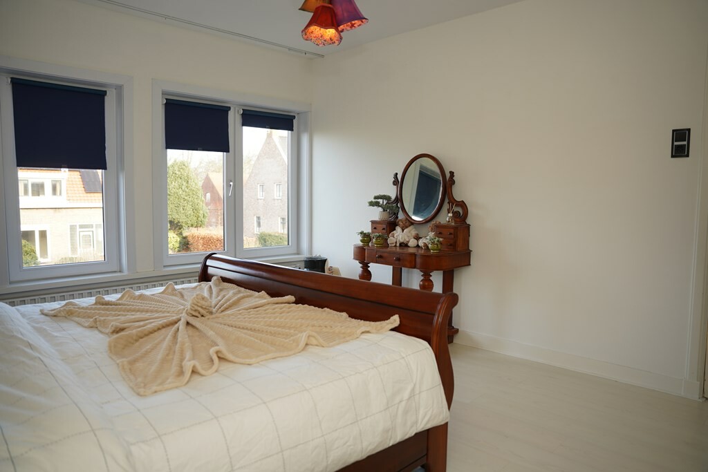 Hier zijn 3 mooie slaapkamers. Twee slaapkamers bieden een fraai uitzicht over de polders. Je kijkt zelfs tot aan de duinen en bij vloed kun je de zeeschepen aan de horizon voorbij zien glijden.