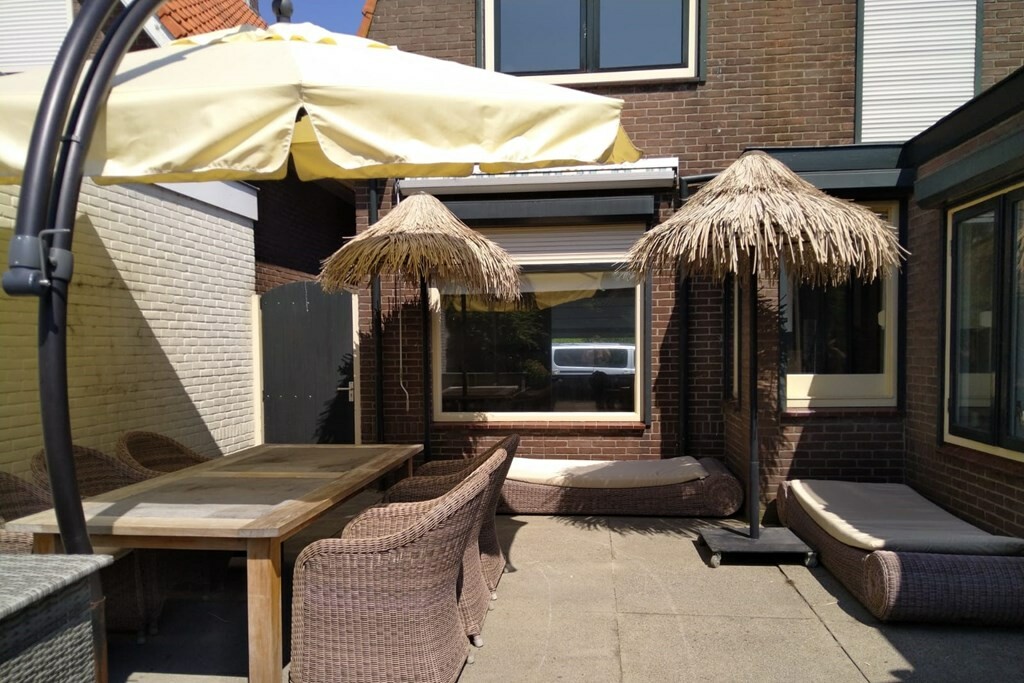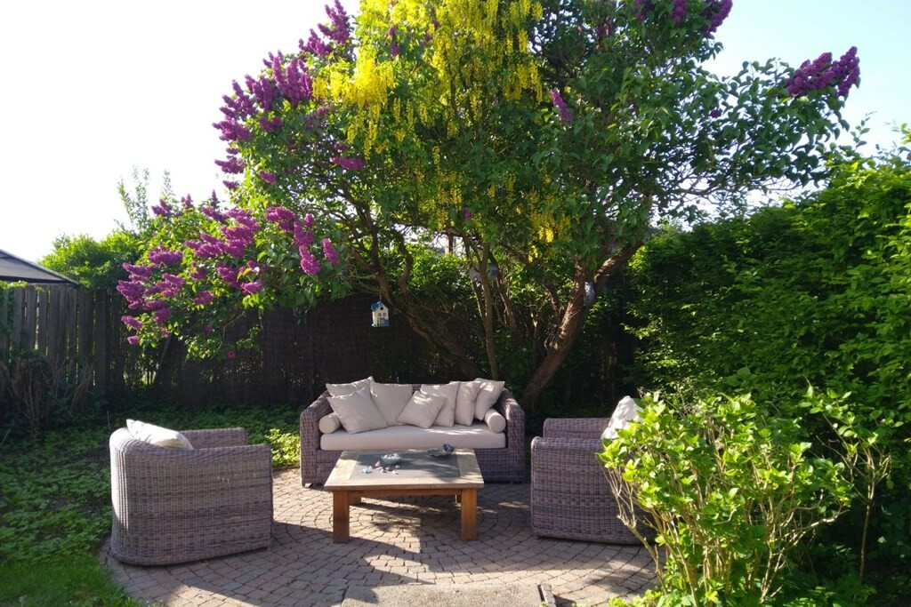 Verdeeld over de tuin vind je diverse knusse plekjes om buiten te zitten. Dankzij de handige achterom via de zijkant van het huis is alles goed bereikbaar.