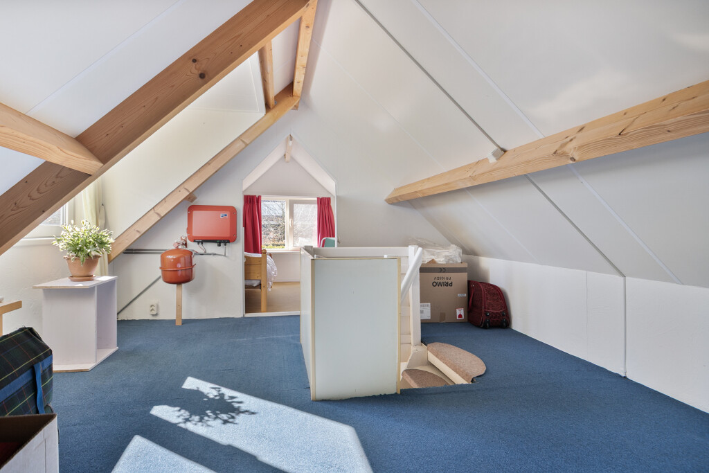 Op de eerste verdieping vindt u een royale overloop met toegang tot twee volwaardige slaapkamers. Deze verdieping biedt volop ruimte voor logees, kinderen, hobby of een thuiskantoor.