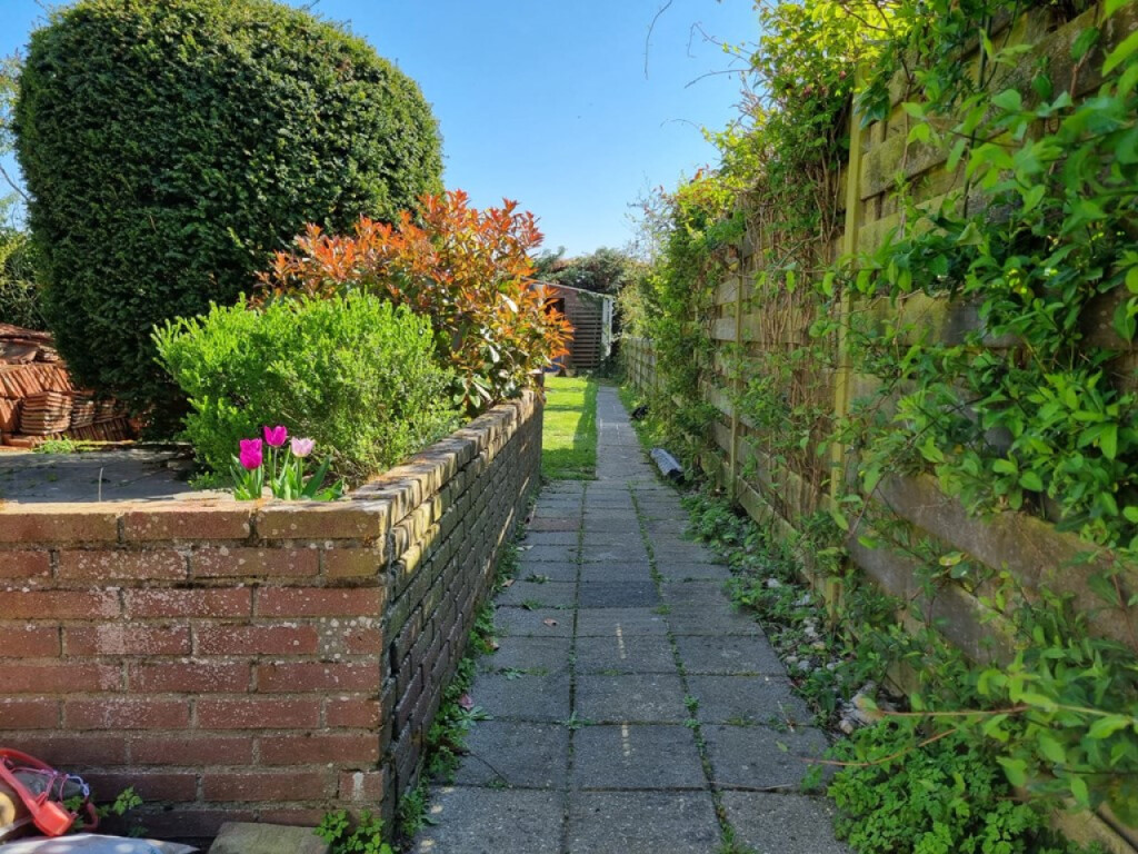 Via het pad naast het huis met de poort ben je snel aan de voorzijde van het huis.