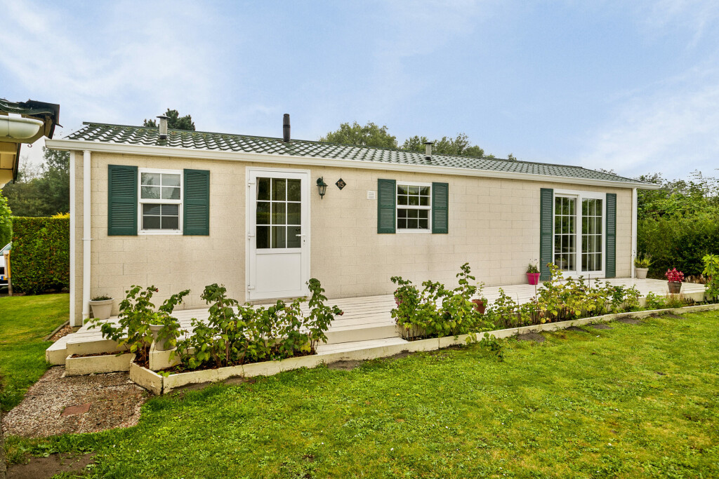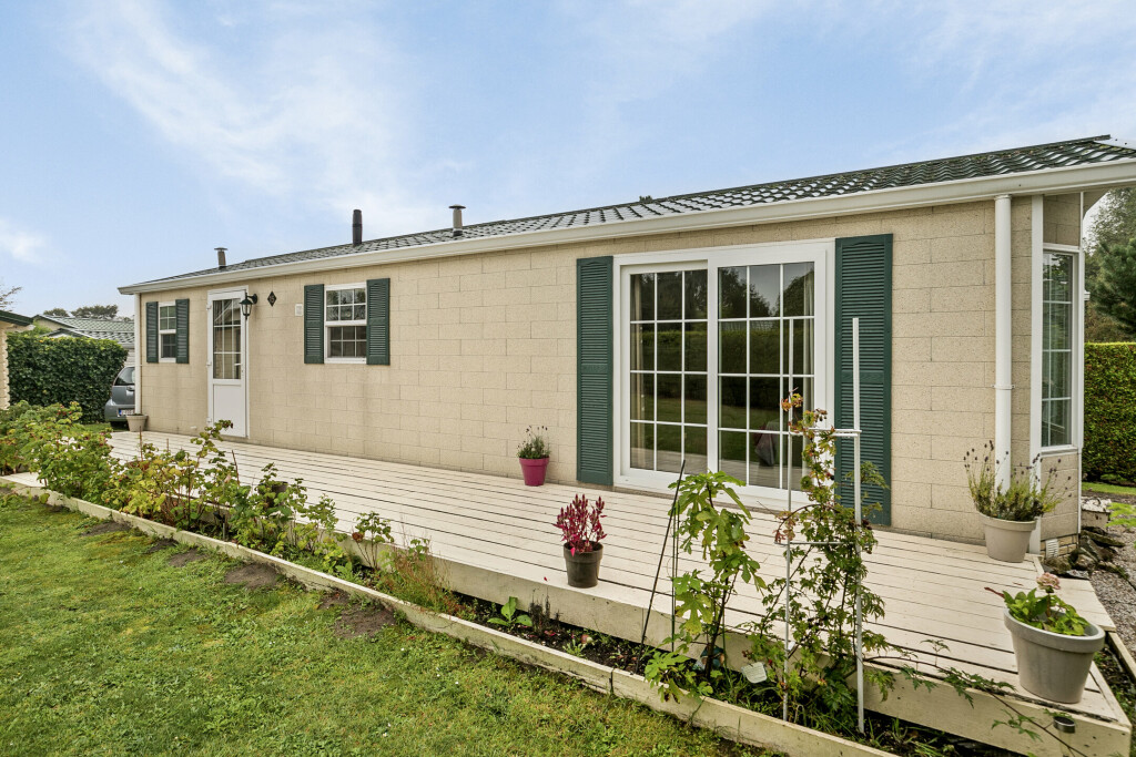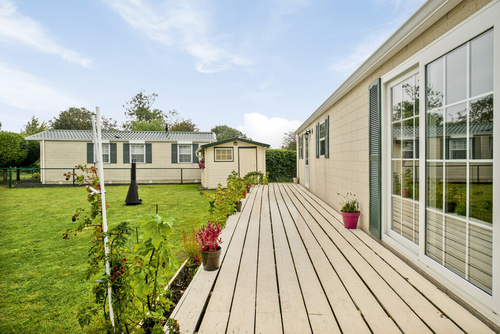 De ruime onderhoudsvriendelijke tuin aan de achterzijde van het chalet beschikt over een tuinhuis en een mooi terras, waar u een gezellige zit- en/of eethoek kan creëren. Daarnaast beschikt het chalet ook over eigen parkeervoorziening.