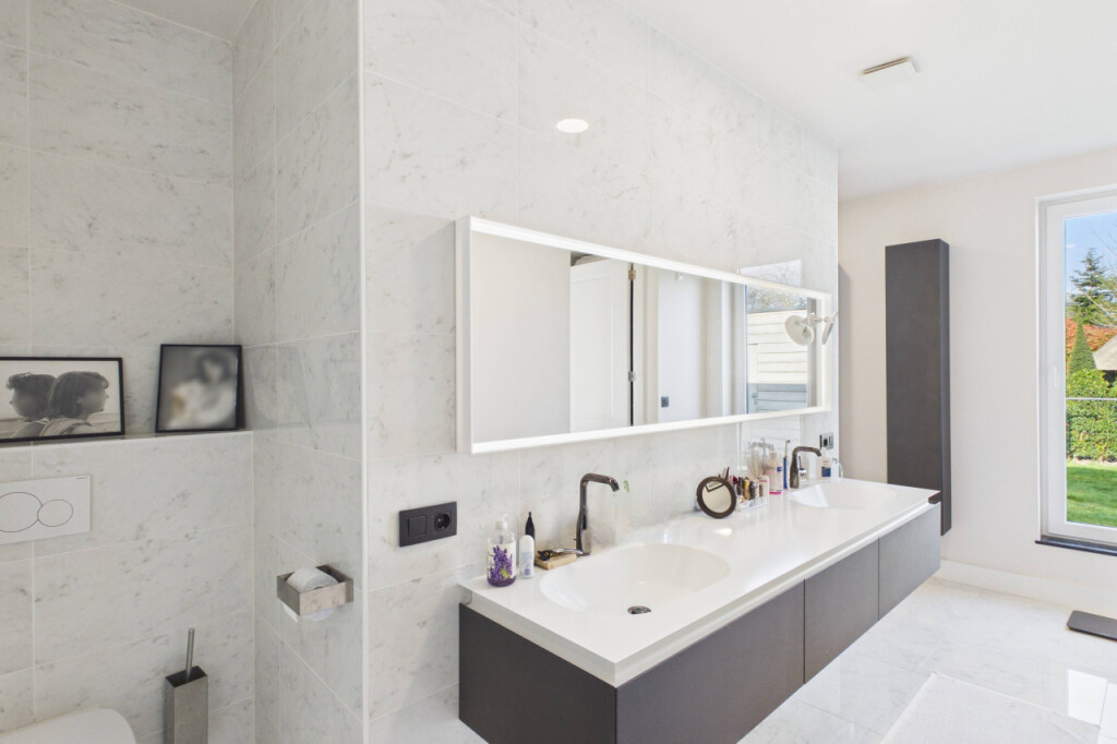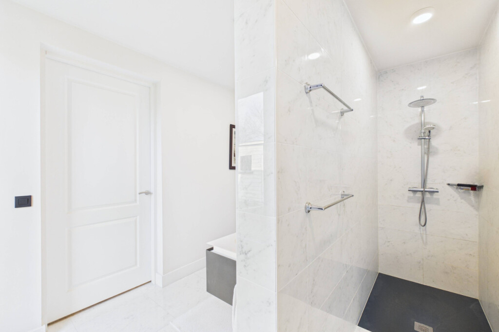 Het slaapgedeelte bestaat uit drie volwaardige kamers. De hoofdslaapkamer is rustig gelegen en grenst direct aan de luxe badkamer, voorzien van een dubbele wastafel en een royale inloopdouche.