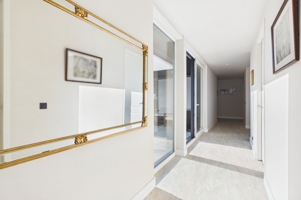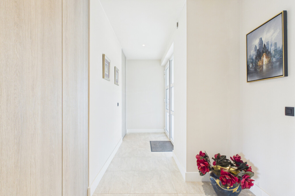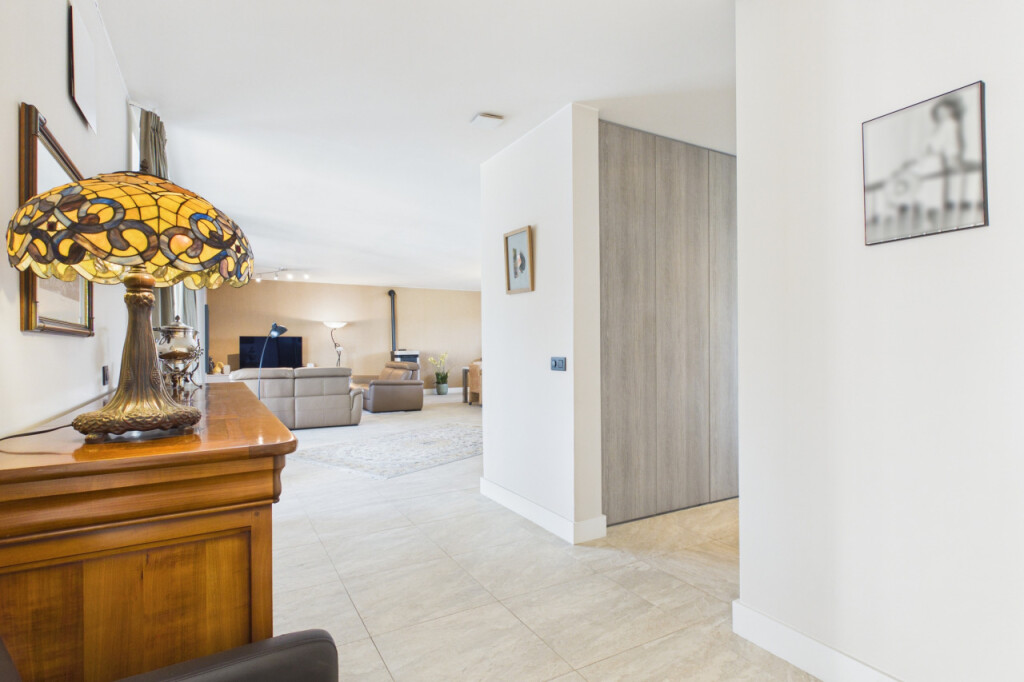 Via de entree kom je in de centrale hal, die de woning op natuurlijke wijze verdeelt in een woon- en slaapgedeelte.