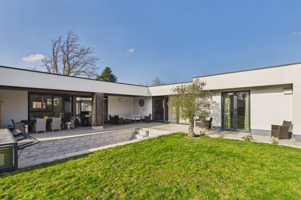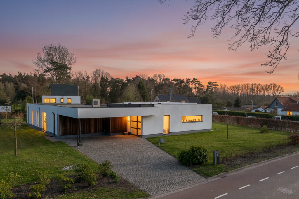 Vrijstaand, gelijkvloers en gebouwd in 2019. Deze bungalow combineert strakke architectuur met een hoog afwerkingsniveau en een wooncomfort dat direct overtuigt.