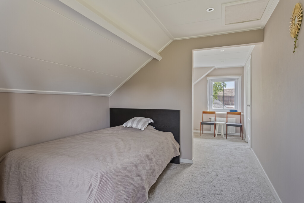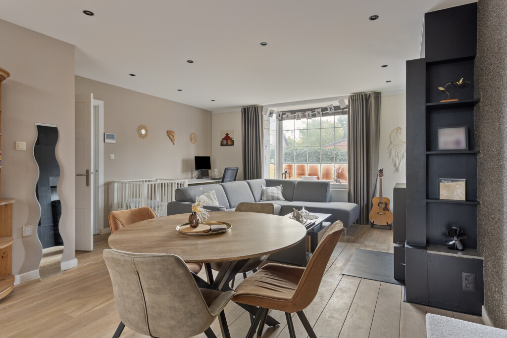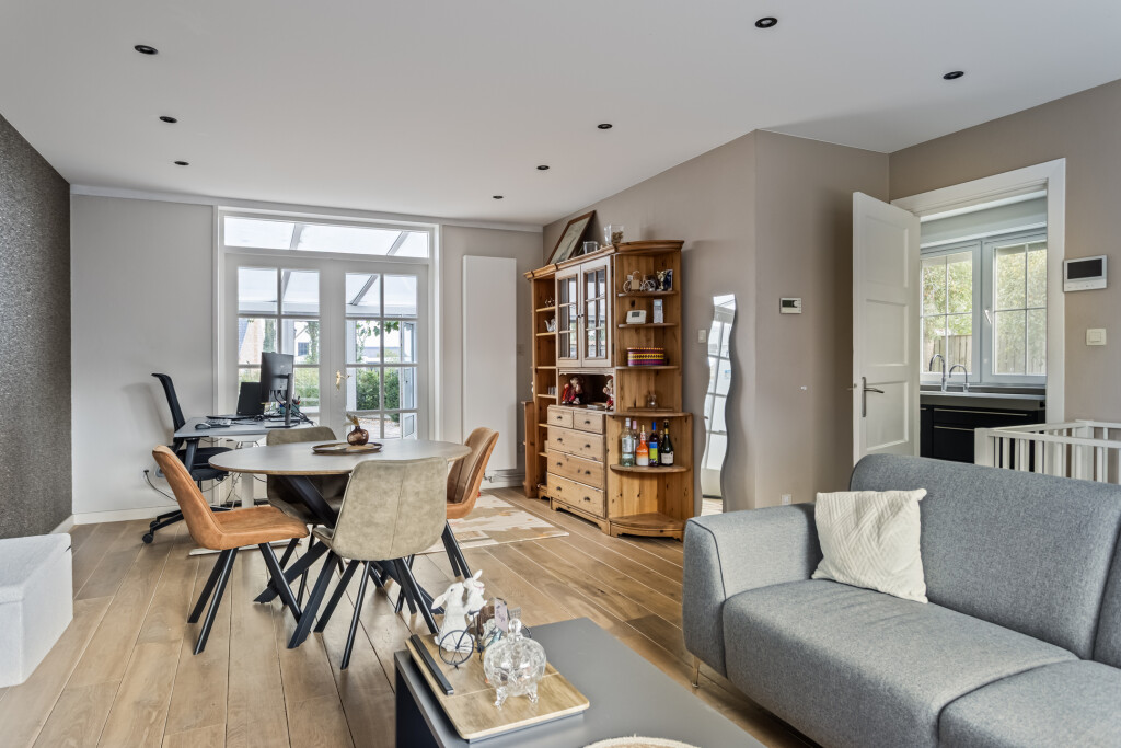 Op een royaal perceel van ruim 1.400 m² staat deze vrijstaande woning. De diepe tuin, het groene uitzicht en de aanwezigheid van een geïsoleerd bijgebouw maken dit een ideale plek voor wie houdt van ruimte rondom de woning. Binnen vind je een sfeervolle woonkamer met houthaard en serre, waar je kunt genieten van het zicht op de tuin. Met 10 zonnepanelen en diverse comfortabele voorzieningen combineert deze woning het landelijke karakter met een stukje duurzaamheid.