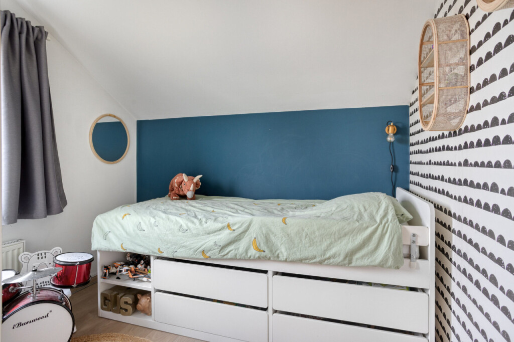 Middels een vlizotrap is de handige bergzolder bereikbaar. Hier hangt de c.v-ketel (Intergas ’15).