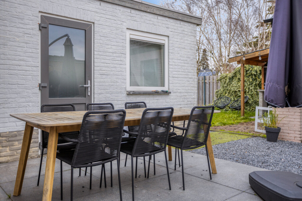 Ook buiten zit het hier goed. De woning heeft een heerlijke tuin rondom, waardoor je op elk moment van de dag een zonnig (of juist beschut) plekje kunt vinden. Daarnaast zijn er een garage en berging, ideaal voor hobby, fietsen of extra opslag. Als kers op de taart is er een kleine overkapping: dé plek voor een buitenkeuken/BBQ en lange avonden met vrienden en familie.