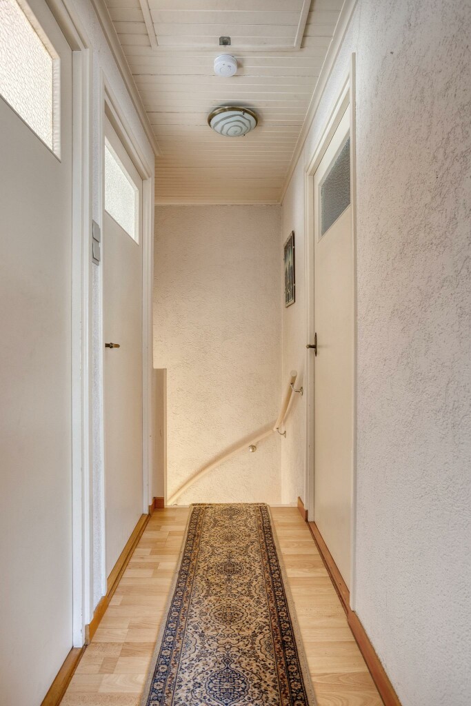 Overloop die toegang biedt tot 2 ruime slaapkamers met rolluiken en een middelgrote slaapkamer.