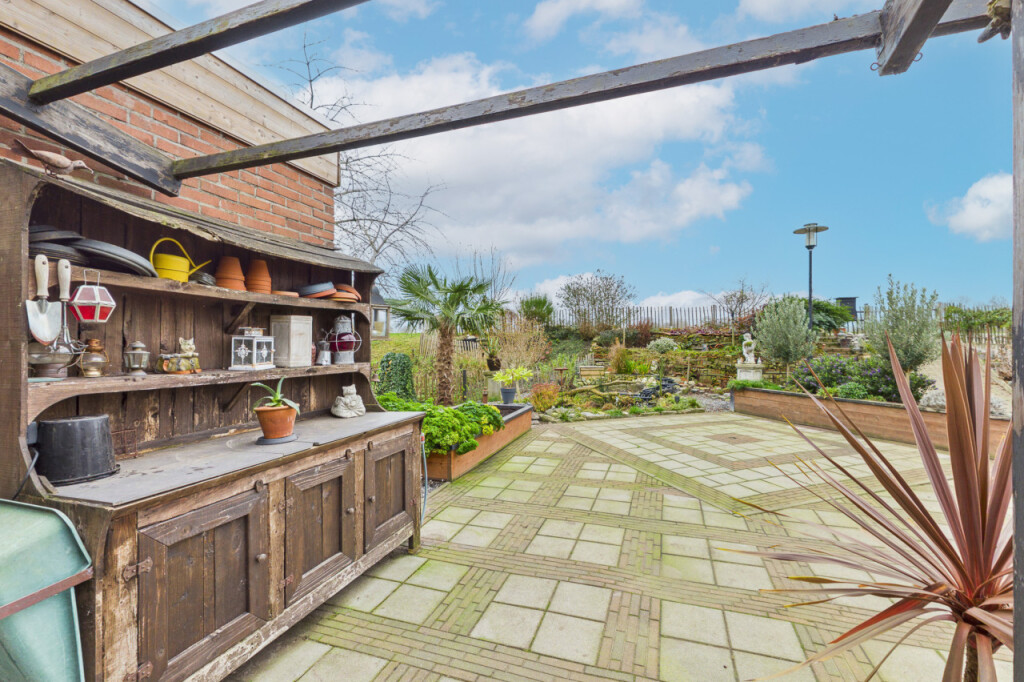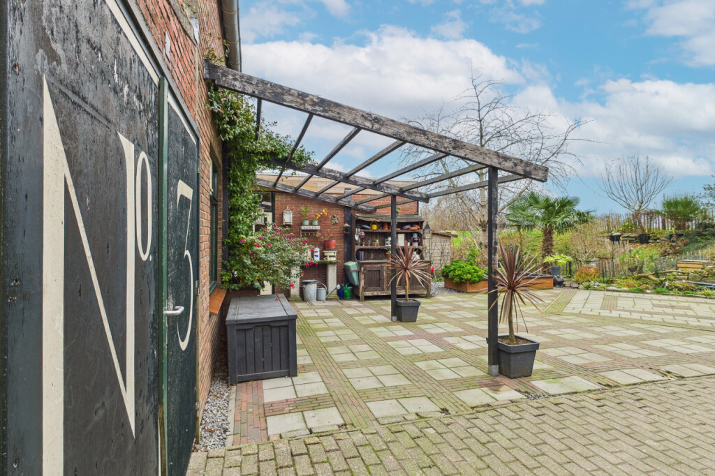 De tuin is goed onderhouden en biedt privacy. Er is een vrijstaande houten berging en een aangebouwde stenen berging, geschikt voor extra opslag. De groene border maakt het geheel compleet en biedt voldoende ruimte voor buitenactiviteiten.