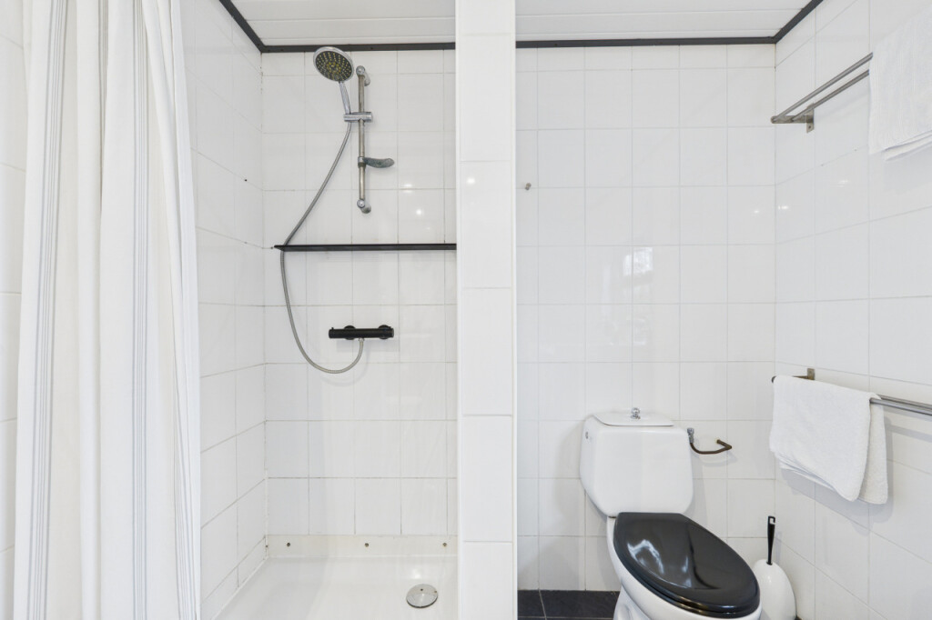 Deze vrijstaande woning biedt een praktische indeling met twee slaapkamers en een woonkeuken in lichte uitvoering met inbouwapparatuur. De woonkamer is licht en overzichtelijk ingericht en biedt voldoende ruimte om te zitten of ontspannen. De badkamer is volledig uitgerust met douche, wastafel, toilet en witgoedaansluiting.