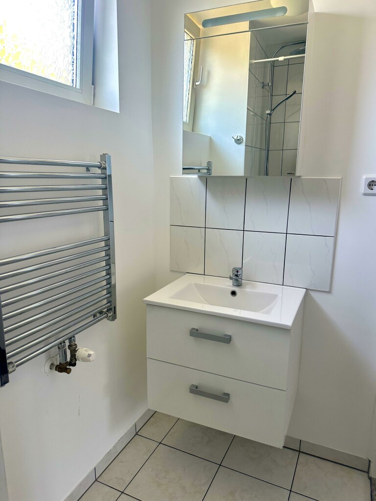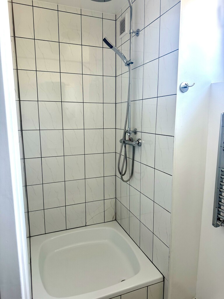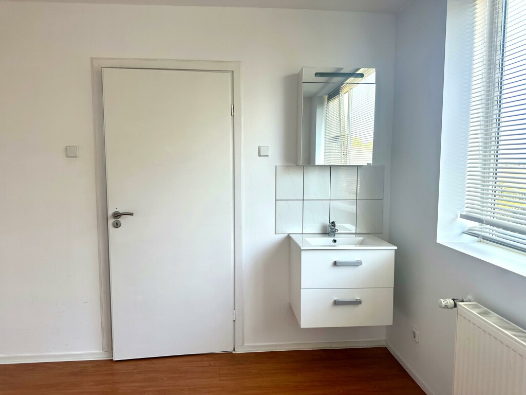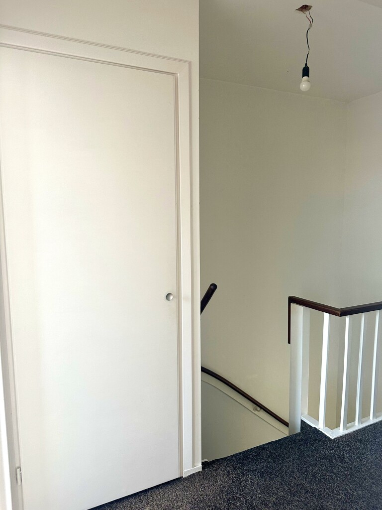 Op de verdieping zijn drie slaapkamers, allemaal voorzien van een laminaatvloer. Een wastafelmeubel met spiegelkast in de grootste slaapkamer zorgt voor extra gemak. De badkamer is compact maar praktisch ingedeeld met een douche en een wastafelmeubel met spiegelkast. Een kast op de overloop biedt extra berging.