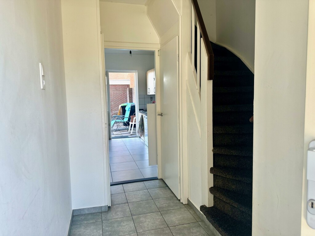 Via de hal met trapopgang, toilet en handige bergkast onder de trap komt u binnen in de woning. Vanuit de hal komt u via de keuken in de woonkamer. Deze ruimte is licht dankzij de grote raampartijen aan zowel de voor- als achterzijde. De tegelvloer geeft de woonkamer een frisse en onderhoudsvriendelijke uitstraling. Er is voldoende plek voor zowel een gezellige zithoek als een ruime eettafel. De keuken ligt aan de achterzijde van de woning en heeft een recht keukenblok met inbouwapparatuur, een 4 pits keramische kookplaat met afzuigkap en een vaatwasser.