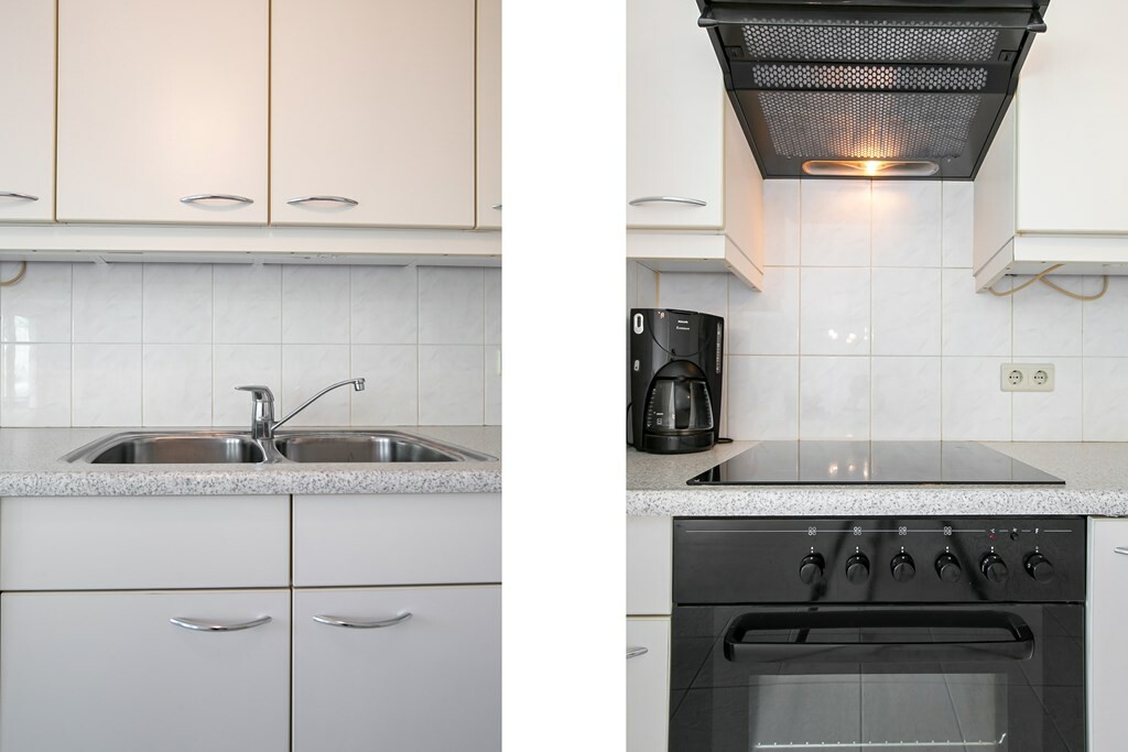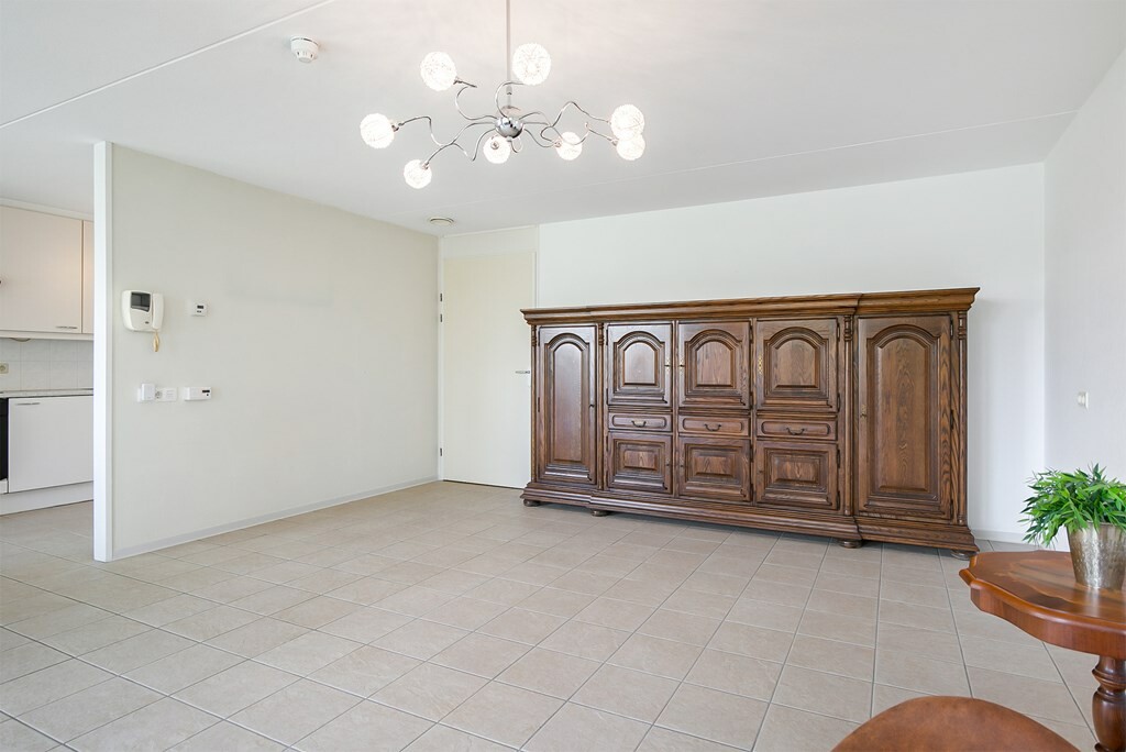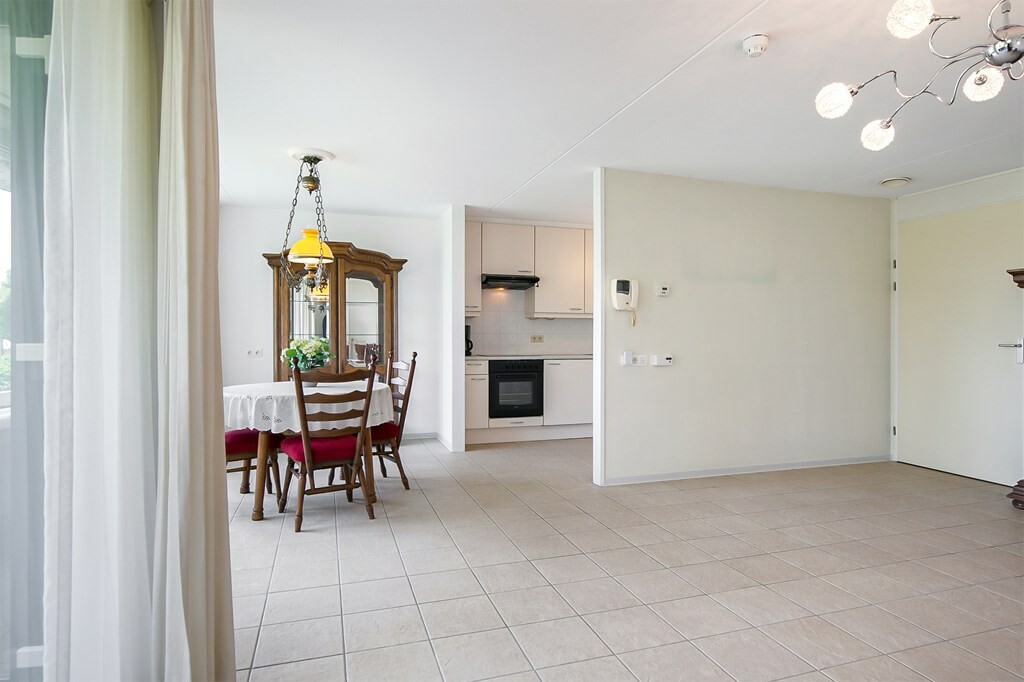 De woonkamer met open keuken heeft veel natuurlijke lichtinval en een panoramisch uitzicht over het kalme water van de Hoekse Kreek. Ook vanuit de loggia kun je heerlijk genieten van de buitenlucht en het uitzicht. De keuken is voorzien van de nodige inbouwapparatuur zoals een koelkast, diepvries, vaatwasser, oven, inductiekookplaat en afzuigkap.