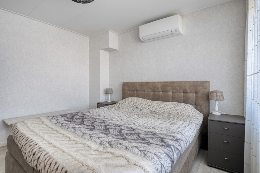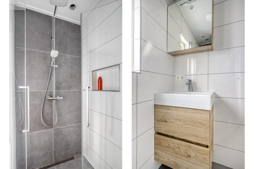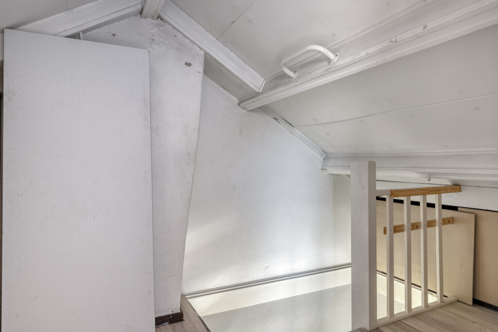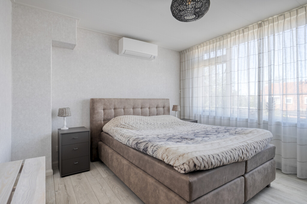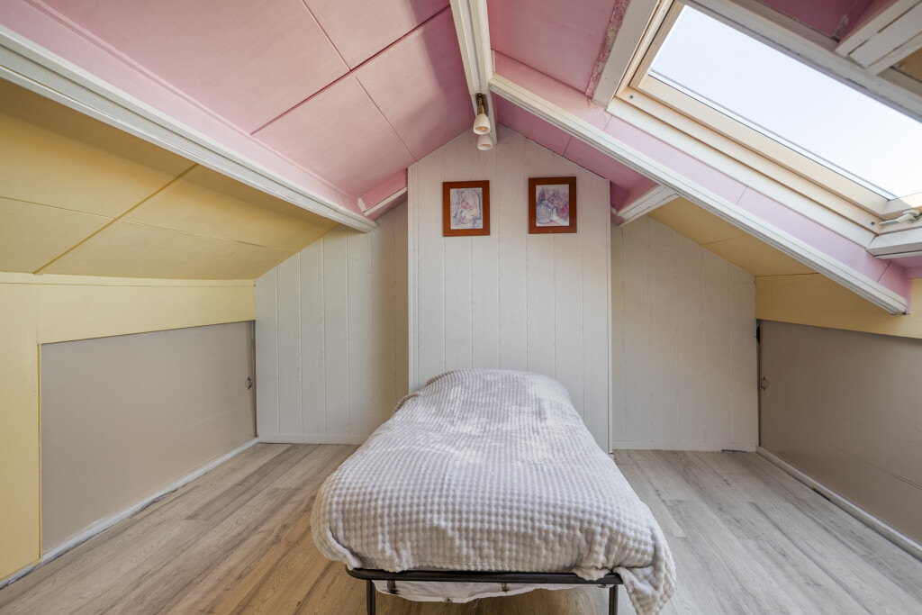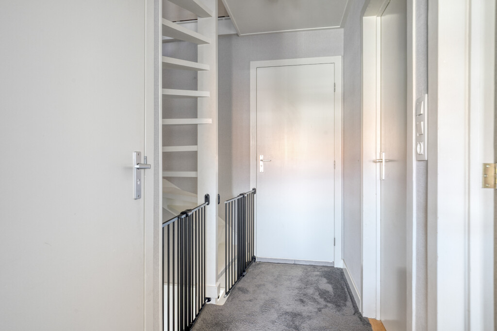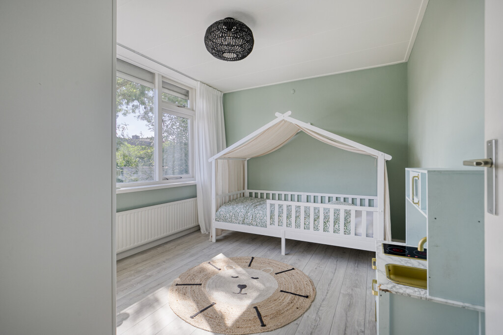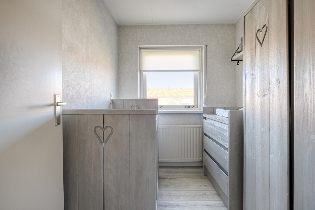 De tweede verdieping verrast met een vierde slaapkamer, compleet met extra bergruimte achter de schotten. Dit kan een perfecte tienerkamer zijn, maar ook een rustige thuiswerkplek of hobbykamer. De ruimte voelt licht en praktisch in gebruik.
