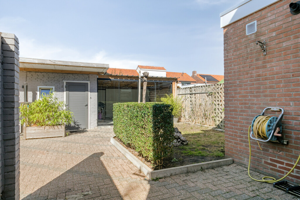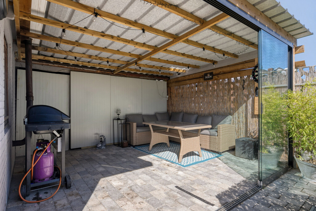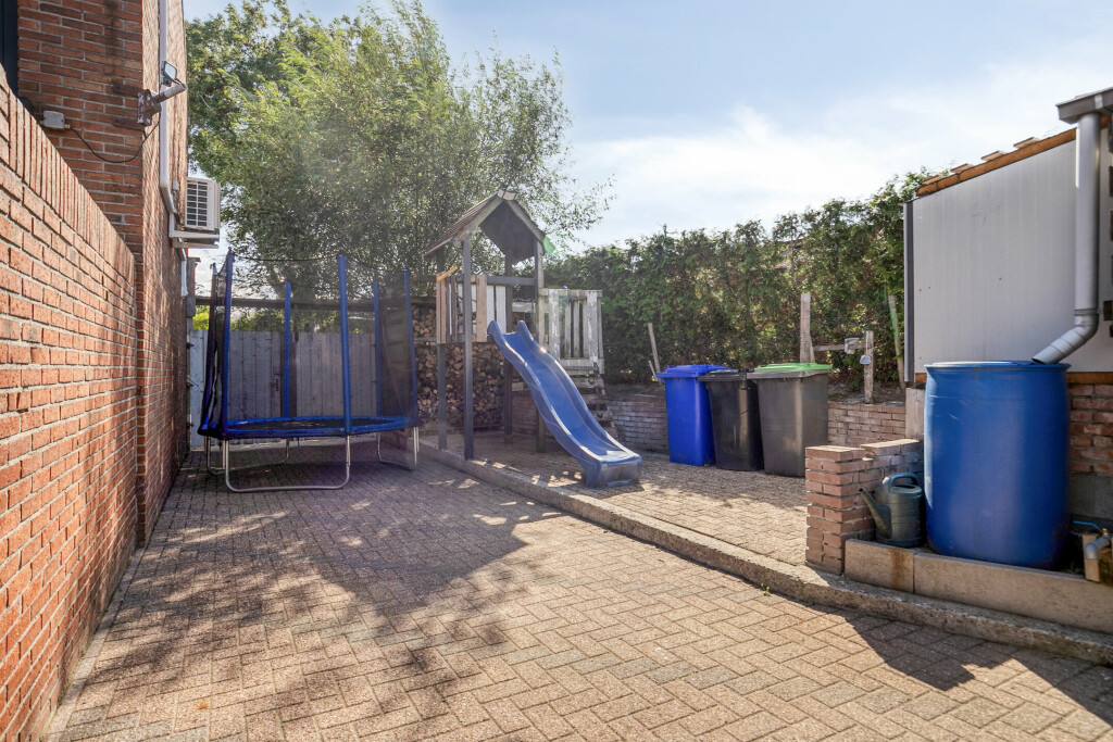 De tuin is onderhoudsarm aangelegd en ligt op het noordoosten. Dankzij de royale overkapping kun je hier van vroeg in het voorjaar tot laat in het najaar heerlijk buiten zitten, ook als het weer wat minder is. De extra ruime garage biedt mogelijkheden te over: van stalling en opslag tot een fijne klus- of hobbyruimte. De vrije achterom maakt het plaatje compleet.