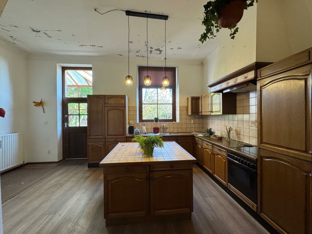 Aan de achterzijde bevindt zich de grote woonkeuken met toegang tot de achtertuin én een aangebouwde serre die veel licht binnenlaat.