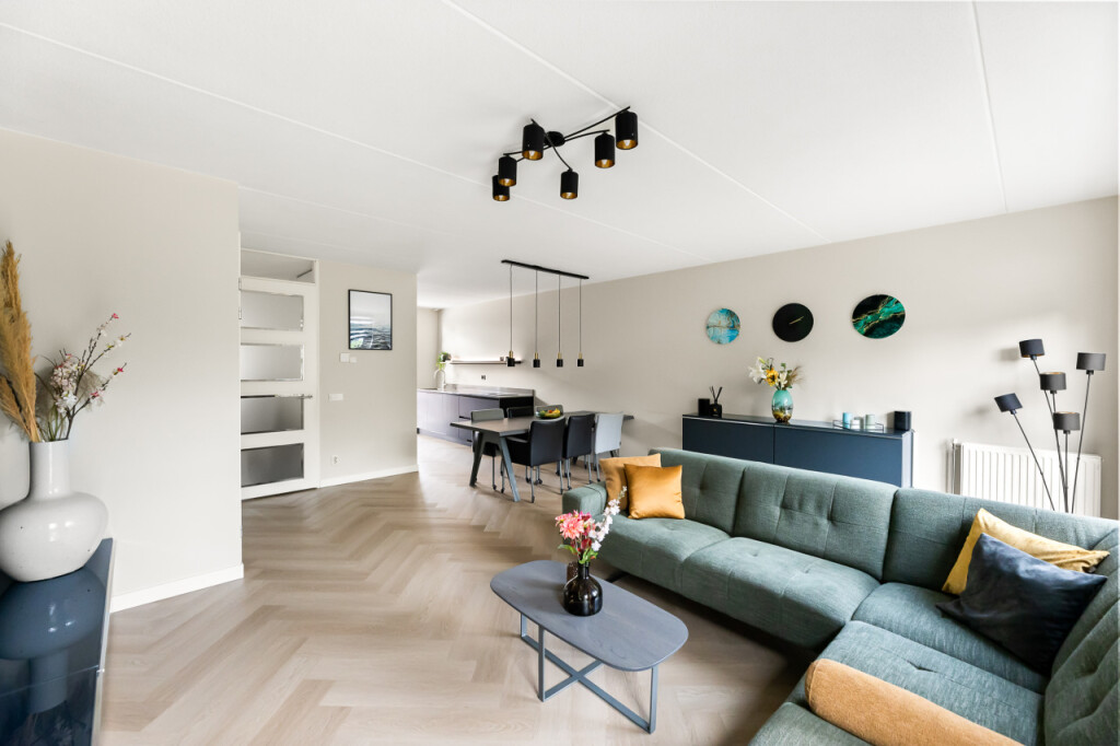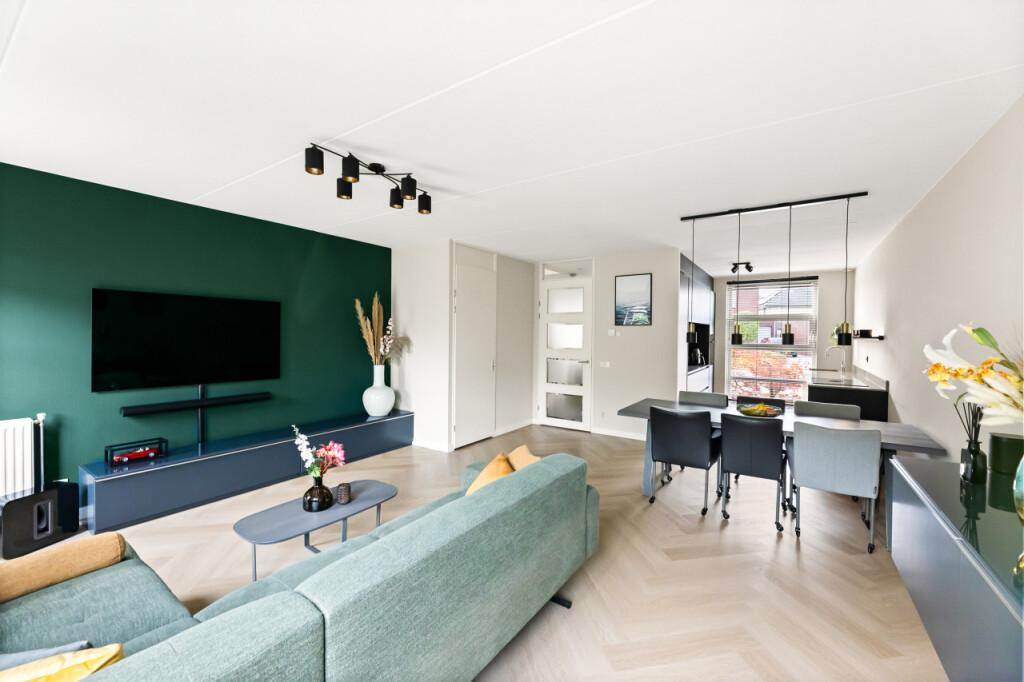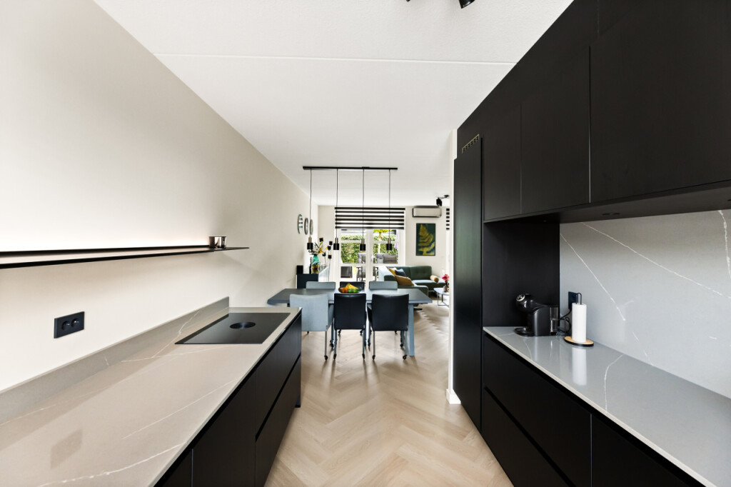 Bij binnenkomst voel je direct de verzorgde sfeer van de hal, met toegang tot het toilet met fonteintje, de meterkast en de trap naar de eerste verdieping. De lichte doorzonwoonkamer vormt het hart van de woning en is in 2024 volledig vernieuwd: de wanden zijn strak gestuct en de nette PVC-vloer zorgt voor een moderne, warme uitstraling. Via dubbele openslaande deuren, of de extra deur, stap je zo de achtertuin in. De luxe keuken, eveneens uit 2024, is uitgevoerd in een donkerhouten tint met een licht natuurstenen werkblad en voorzien van hoogwaardige apparatuur, waaronder een Bora-kookplaat en een Quooker. Een stijlvolle en praktische plek voor elke kookliefhebber. De carport en de recent opnieuw in stabilisé gelegde oprit zorgen bovendien voor comfortabel parkeren aan huis. Tevens is deze van een elektrische laadpaal voorzien.