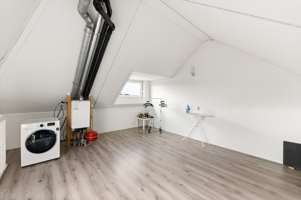 De tweede verdieping is bereikbaar via een vaste trap en biedt een grote open ruimte die naar eigen wens kan worden ingericht. Hier kun je eenvoudig een extra slaapkamer, kantoor of hobbyruimte creëren. Ook bevinden zich hier de witgoedaansluitingen, waardoor deze verdieping extra praktisch in gebruik is.