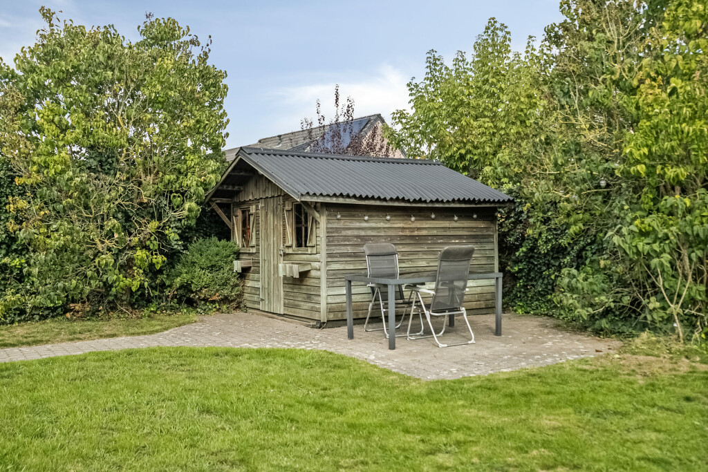 De tuin is een heerlijke buitenruimte om te ontspannen of te spelen. Het terras met zonnescherm grenst direct aan de woning en het gazon biedt volop ruimte voor kinderen om te spelen. Achterin staat een houten berging voor extra opslag. Dankzij de ligging op het oosten kun je ’s ochtends en in de vroege middag genieten van zon, terwijl er ook beschutte plekjes zijn om rustig in de schaduw te zitten.