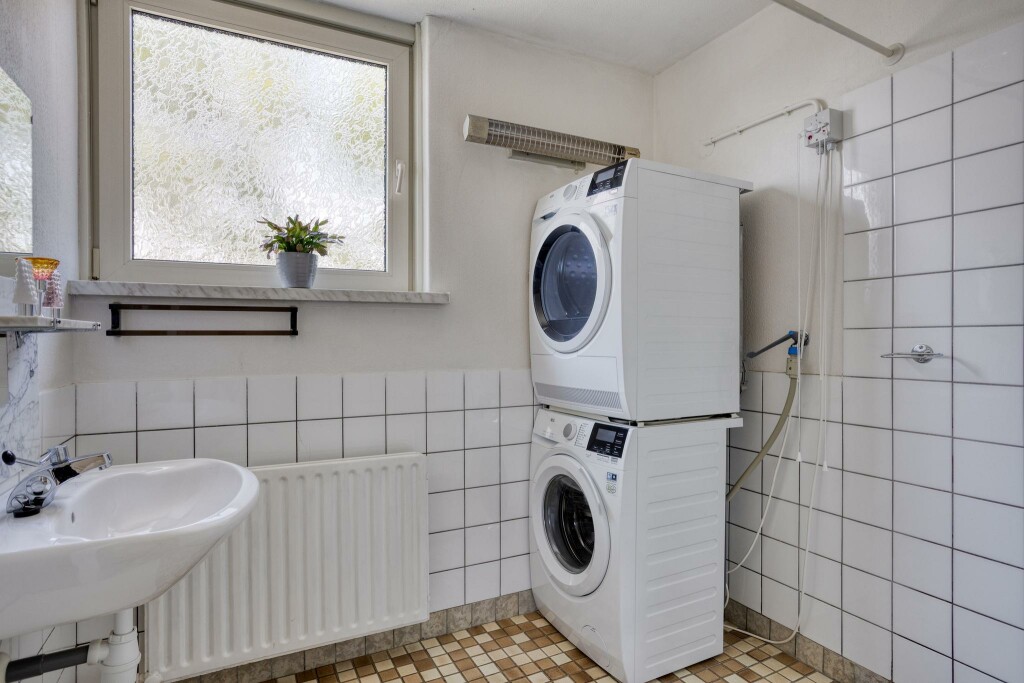 Op de eerste verdieping bevinden zich drie slaapkamers, waarvan twee met praktische inbouwkasten. De slaapkamer aan de voorzijde is daarnaast voorzien van een eigen wastafel. De badkamer is eenvoudig, maar verzorgd en uitgerust met een douche, een wastafel en de aansluiting voor de wasmachine.