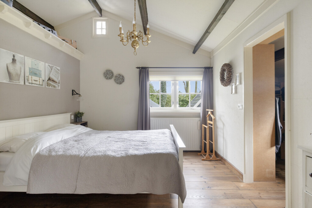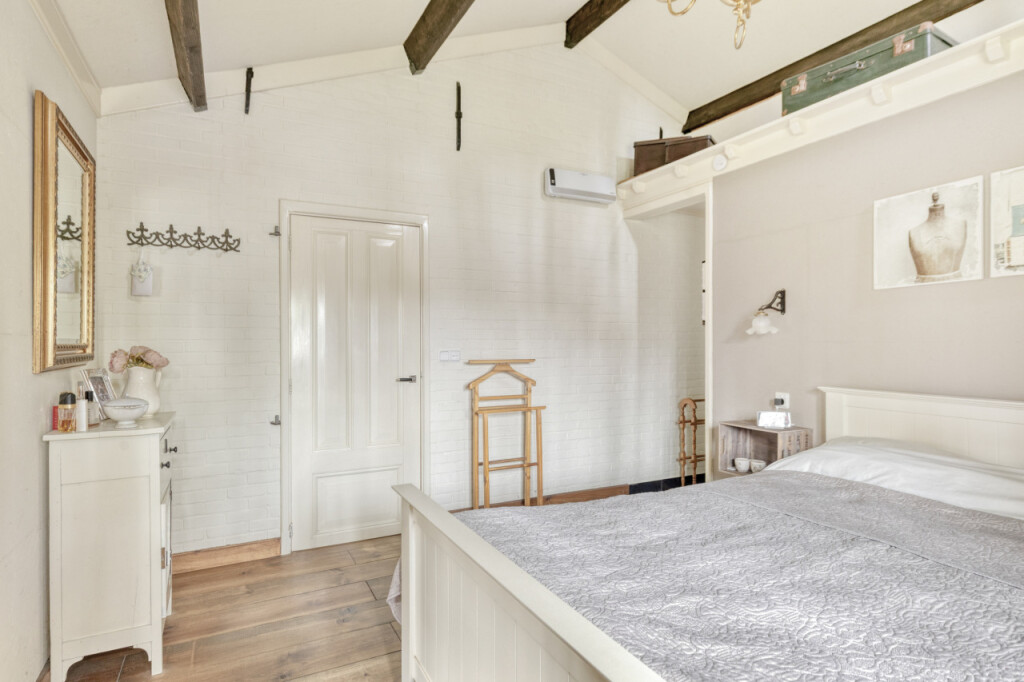 Vanuit de woonkamer bereik je de comfortabele slaapkamer met ensuite badkamer. Een heerlijke privéruimte met een nette inloopkast. De badkamer is ingericht met een bubbelbad, inloopdouche, dubbele wastafel en een toilet. Een plek om na een lange dag heerlijk tot rust te komen.