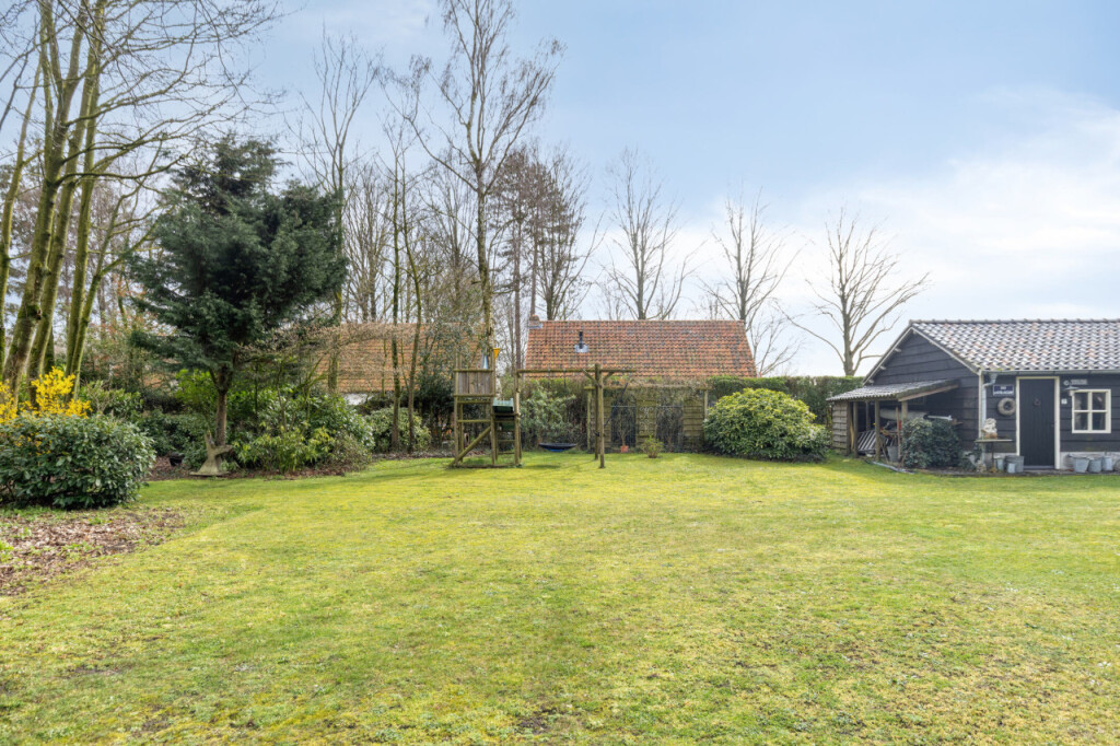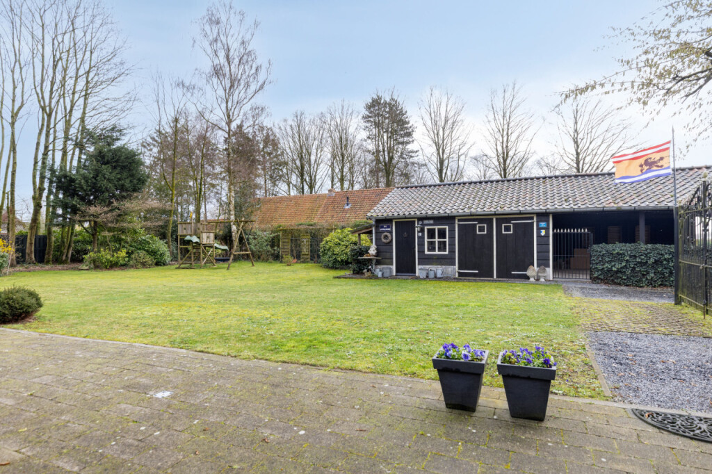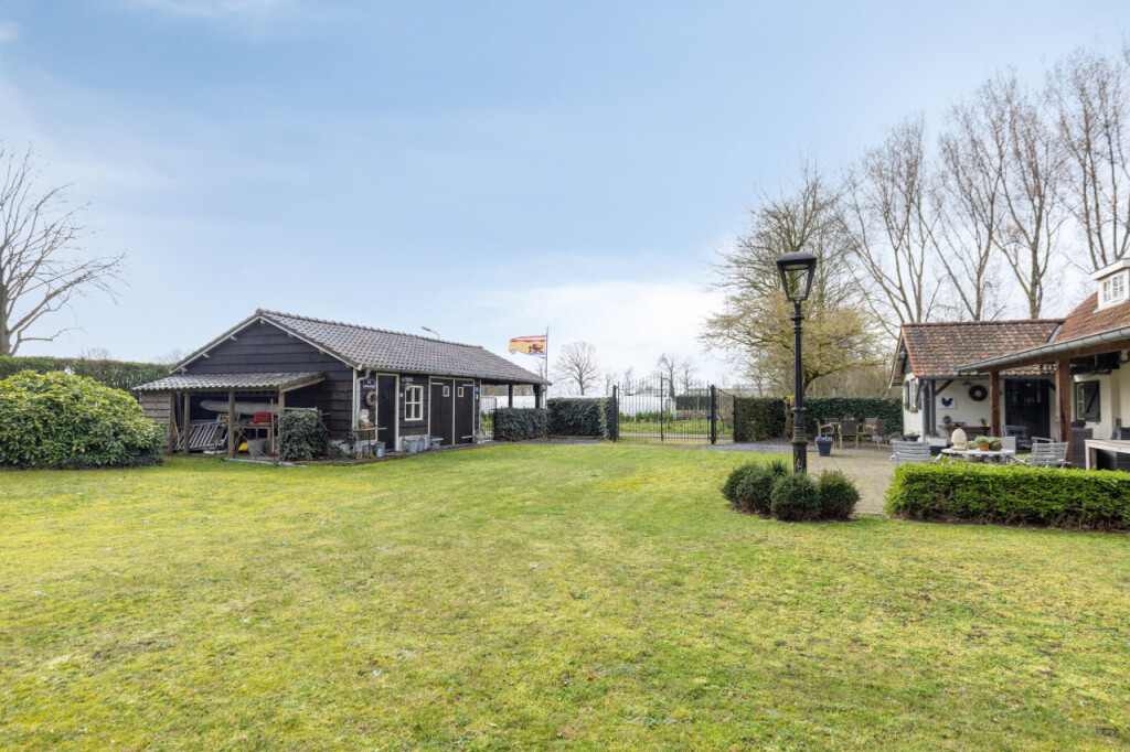 Buiten wacht een tuin die deze woning echt bijzonder maakt. De grote tuin rondom de woning biedt volop ruimte, privacy en groen. Een heerlijke plek om te ontspannen, tuinieren of gezellig samen te zijn. Achter de woning staat een hoge carport waar moeiteloos een camper onder past. Iets verderop vind je een vrijstaande stenen berging met elektra, ideaal voor tuingereedschap en tuinmeubilair.