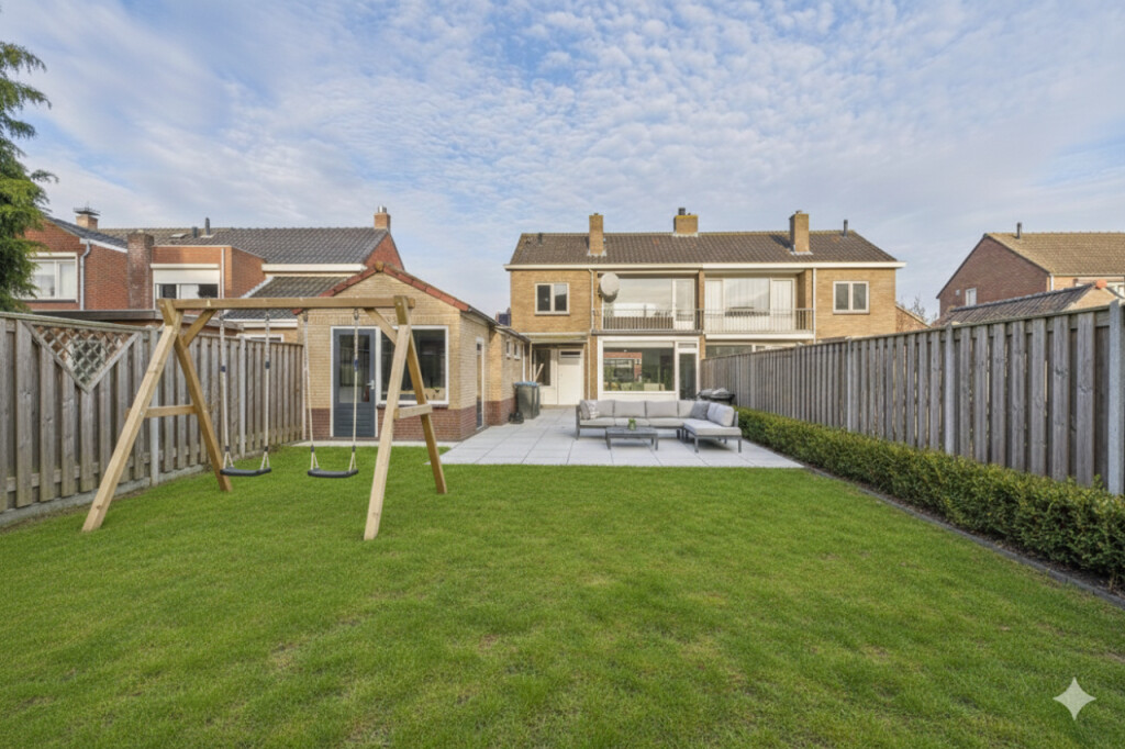 De diepe tuin is gunstig gelegen op het zuiden en biedt volop ruimte om deze geheel naar eigen wens aan te leggen. Hier is het heerlijk zonnig en dankzij de vrije achterom is de tuin ook praktisch in gebruik. Aan de voorzijde van de woning bevindt zich bovendien een lange oprit, waar met gemak plaats is voor twee auto’s. Een fijne extra die zorgt voor comfort en gemak in het dagelijks leven. Aansluitend bevindt zich de aangebouwde stenen garage, voorzien van verwarming, elektra en water. Hier is tevens de cv-opstelling geplaatst en vanuit de garage is er een directe doorgang naar de tuin.