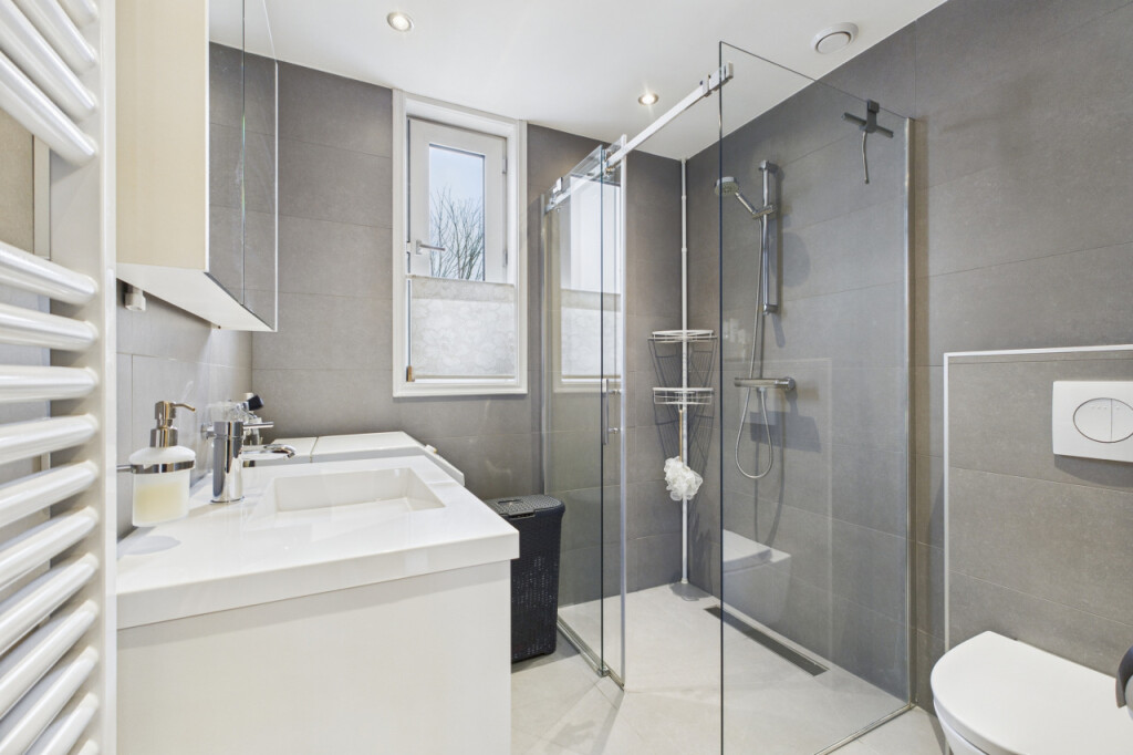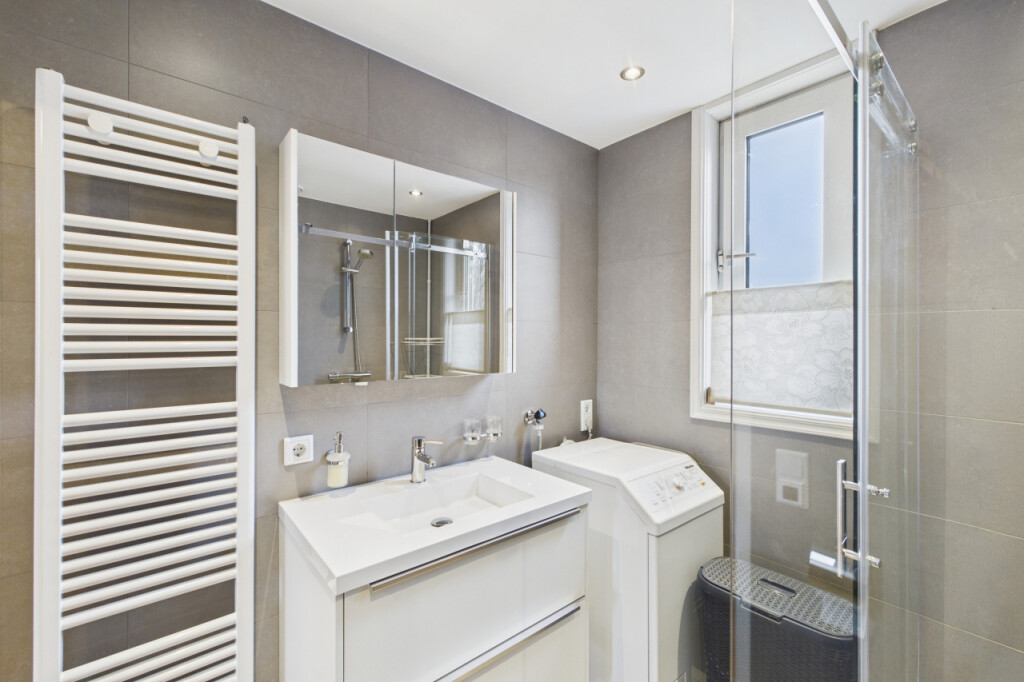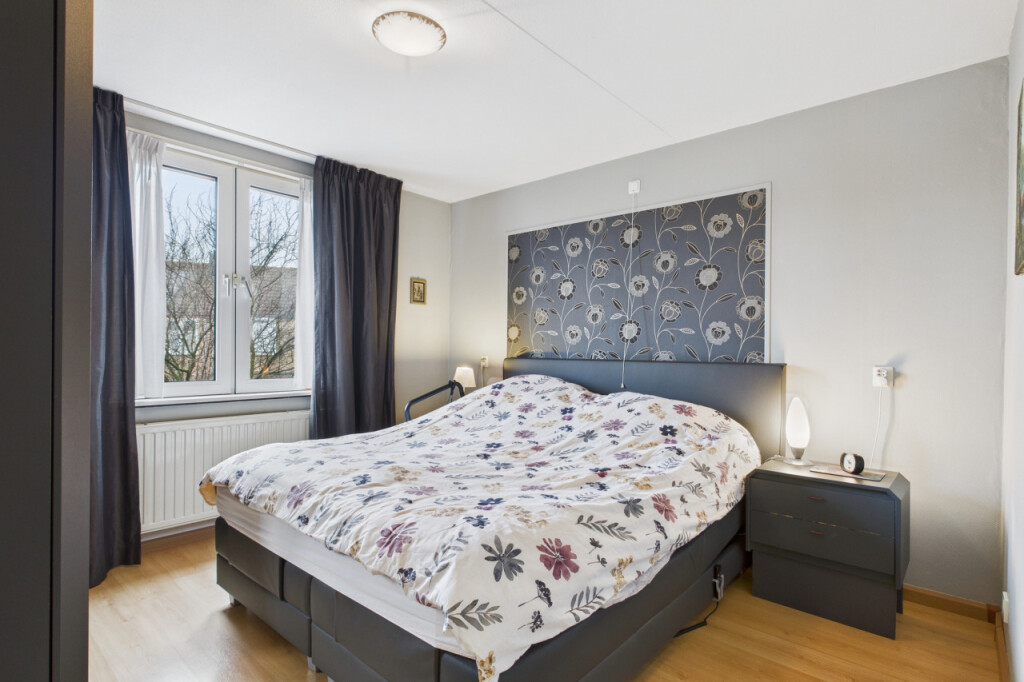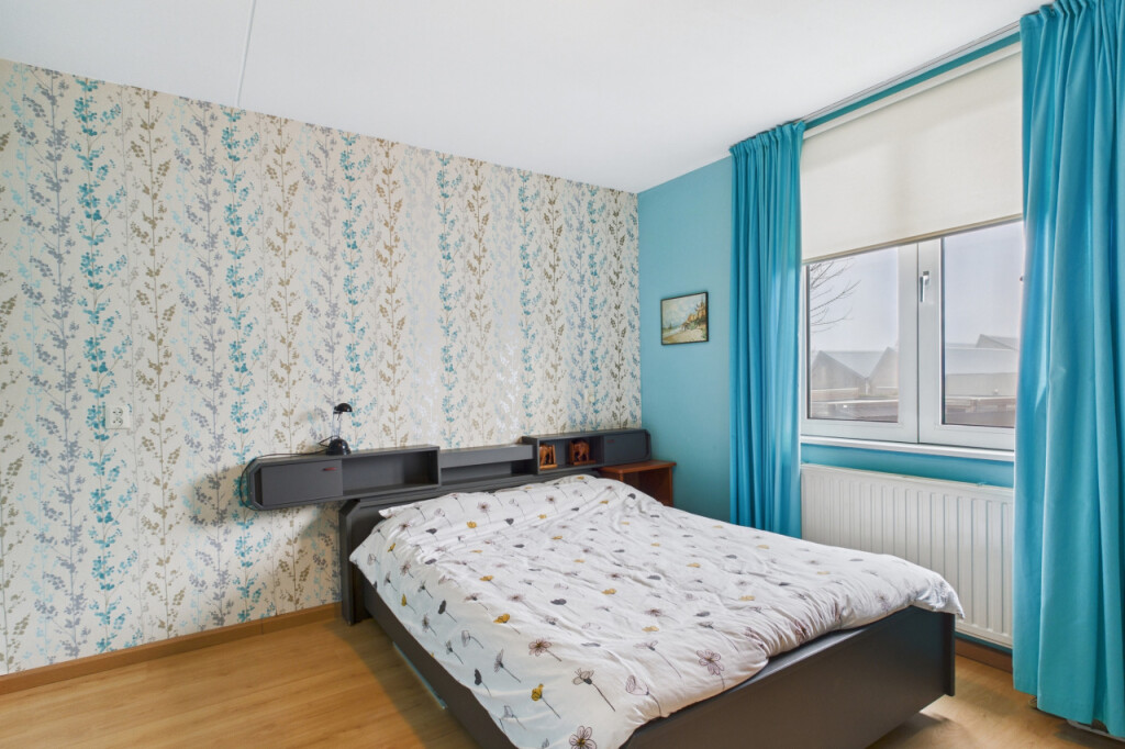 Op de eerste verdieping geeft de overloop toegang tot drie slaapkamers. Twee kamers zijn opvallend ruim van formaat en de derde kamer is iets compacter, maar nog steeds goed bruikbaar als kinder-, werk- of hobbykamer. De badkamer is modern en licht uitgevoerd en beschikt over een douche, toilet en een wastafel met meubel. Ook de witgoedaansluiting bevindt zich hier, netjes geïntegreerd in de ruimte.